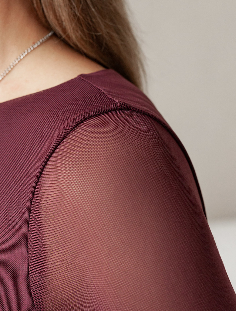 Состав: 95%ПЭ 5%ПУ; ПОДКЛАДКА- 95%Вис 5%ПУ Плотность: 90 Г/м2 Джемпер с вырезом лодочкой и прозрачными рукавами создает женственный и элегантный образ. Тело джемпера бордового цвета выполнено из плотн... Показать описаниеого вискозного трикотажа, обеспечивающего комфорт, в то время как рукава из тонкой сетки создают стильный контраст. Глубокий вырез лодочка подчеркивает линию плеч и создает элегантный силуэт. Идеальный выбор для стильных образов!