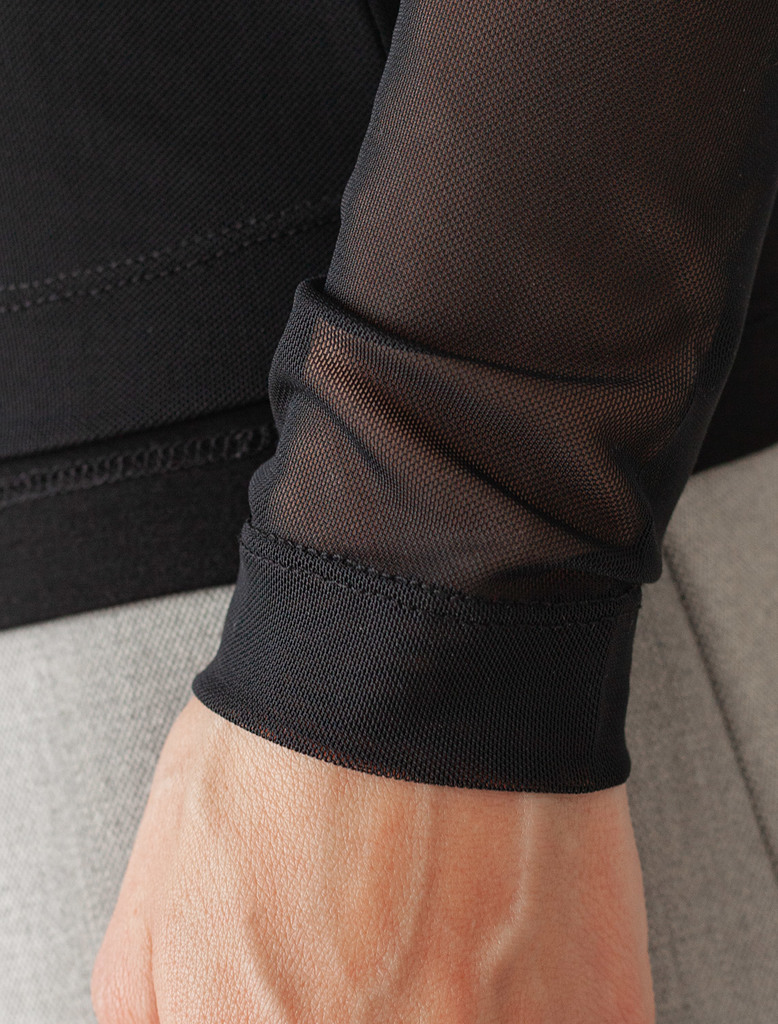 Состав: 95%ПЭ 5%ПУ; ПОДКЛАДКА- 95%Вис 5%ПУ Плотность: 90 Г/м2 Джемпер с вырезом лодочкой и прозрачными рукавами создает женственный и элегантный образ. Тело джемпера черного цвета выполнено из плотног... Показать описаниео вискозного трикотажа, обеспечивающего комфорт, в то время как рукава из тонкой сетки создают стильный контраст. Глубокий вырез лодочка подчеркивает линию плеч и создает элегантный силуэт. Идеальный выбор для стильных образов!