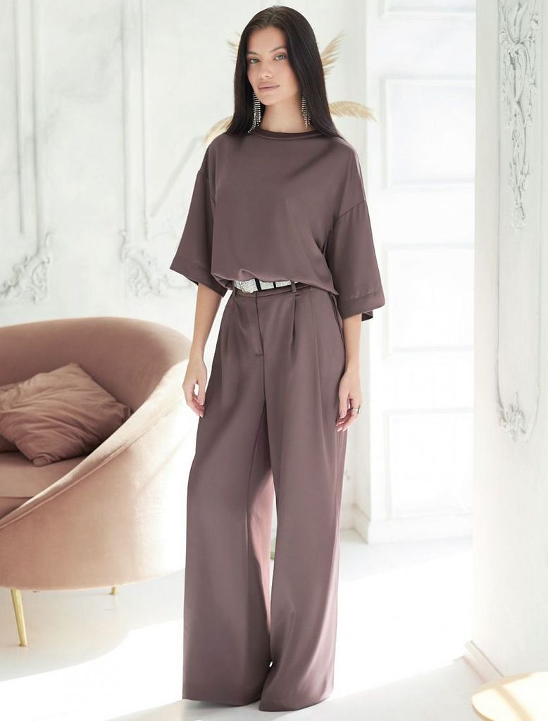 Состав: 97%ПЭ 3%ПУ Плотность: 190 Г/м2 Блузка с короткими рукавами кофейного цвета из струящегося плотного сатина создана для ценительниц комфорта и элегантности. Материал отличается высокой плотность... Показать описаниею, что делает блузку устойчивой к износу и сохраняет аккуратный внешний вид даже при длительном использовании. Струящаяся ткань элегантно ложится по фигуре, подчеркивая достоинства силуэта без лишней утяжеленности, в тоже время приятно ощущается на теле. Свободный крой блузки и спущенная линия плеча дарят ощущение легкости и непринужденности, делая образ одновременно женственным и современным. Широкие рукава средней длины гармонично дополняют образ и идеально подходят для полных рук, обеспечивая комфорт, свободу движений и уверенность. Аккуратная застежка на маленькую пуговицу добавляет утонченности, а круглый вырез красиво обрамляет шею, создавая аккуратную линию декольте. Блузка смотрится нарядно благодаря сочетанию мягкой текстуры сатина и его мягкого не вычурного блеска. Такая повседневная блузка легко впишется в деловой гардероб или станет отличным выбором для вечерней встречи с друзьями. Она гармонично сочетается с юбками, брюками или джинсами — вы сможете создать множество вариантов нарядов на каждый день или подобрать подходящий лук для особого случая, праздника или Нового года.