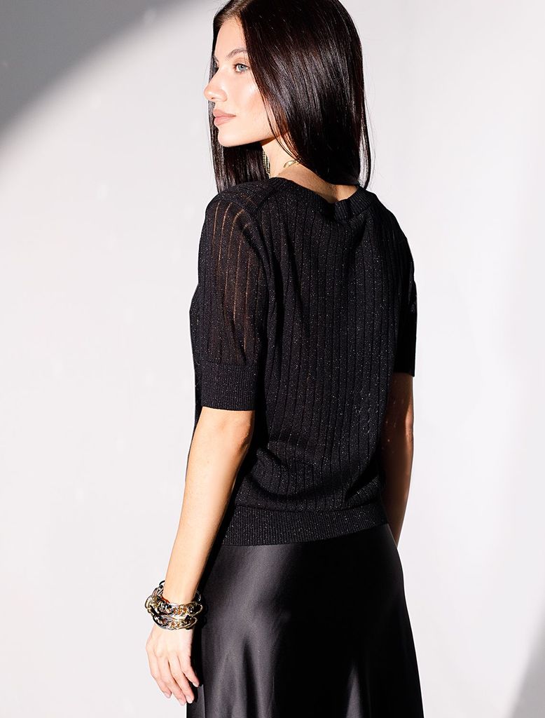 Джемпер с коротким рукавом тонкой вязки из вискозы с люрексомВопросы по товару