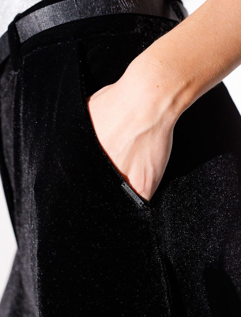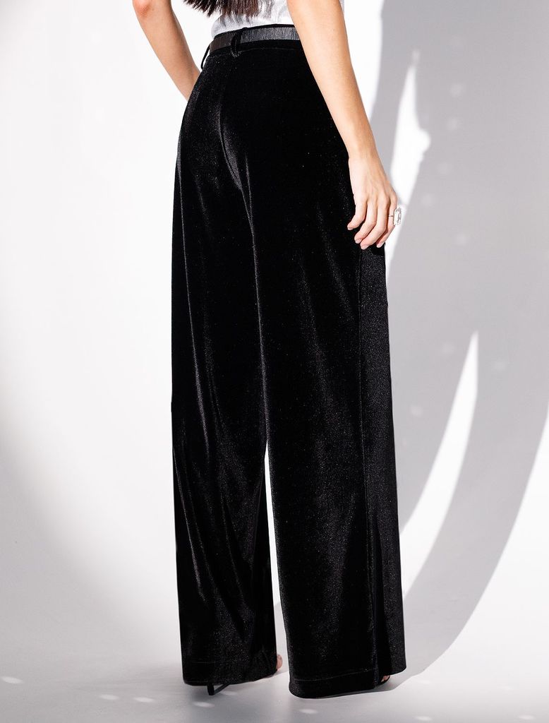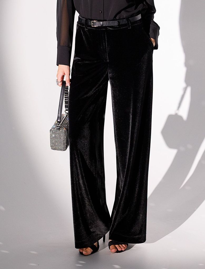 Состав: 94%ПЭ, 6%ПУ Плотность: 275 Г/м2 Брюки палаццо созданы для тех, кто ценит благородный стиль и комфорт. Мягкая бархатная ткань придает образу лаконичный блеск и особый шарм,. Благодаря эластично... Показать описанией ткани свободные брюки подойдут на любую фигуру, подчеркивая достоинства силуэта и позволяя чувствовать себя уверенно в любой ситуации, Вы будете чувствовать себя уверенно. Лаконичный крой прямых брюк гармонично сочетается с повседневными вещами, превращая образ в шикарный вариант для вечерних мероприятий или торжественных событий. Стильные широкие палвццо визуально вытягивают силуэт, подойдут на низкий и высокий рост. представлена различная ростовка. Материал приятен на ощупь, обеспечивает комфорт в течение всего дня, благодаря высокой посадке и сширокому крою создается эффект легкости и свободы движений, что особенно важно для активных женщин. Нарядные длинные брюки смотрятся изысканно благодаря особому мягкому бархату с деликатным переливом — это не только модно, но еще и практично. Плотная структура ткани защищает от ветра и дарит ощущение уюта в прохладное время года. Их глубоки черный цвет добавляет образу выразительности и легко сочетается с разными элементами осеннего гардероба.