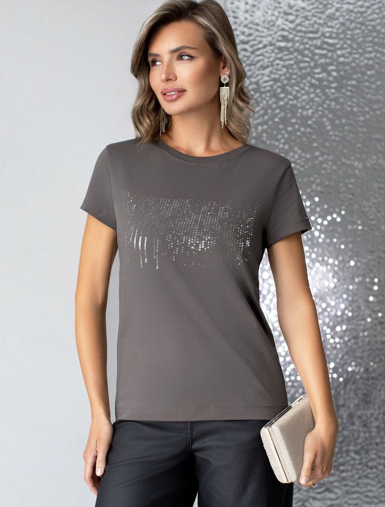 Нарядная футболка с принтом пайетками из премиального хлопка с эластаномВопросы по товару