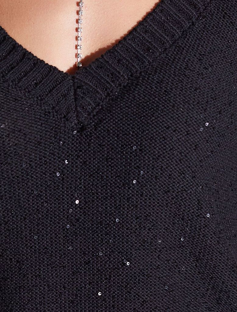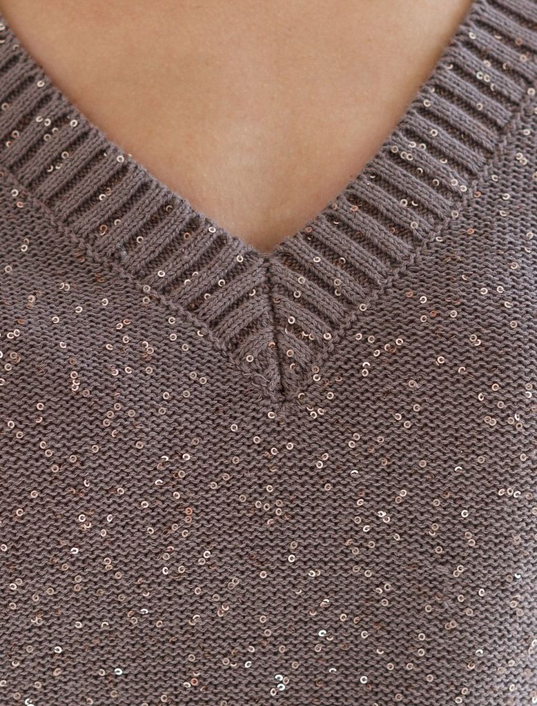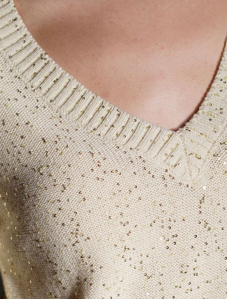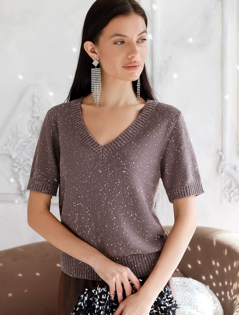 Джемпер с V вырезом и коротким рукавом из хлопковой пряжи с пайеткамиВопросы по товару