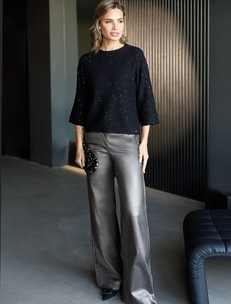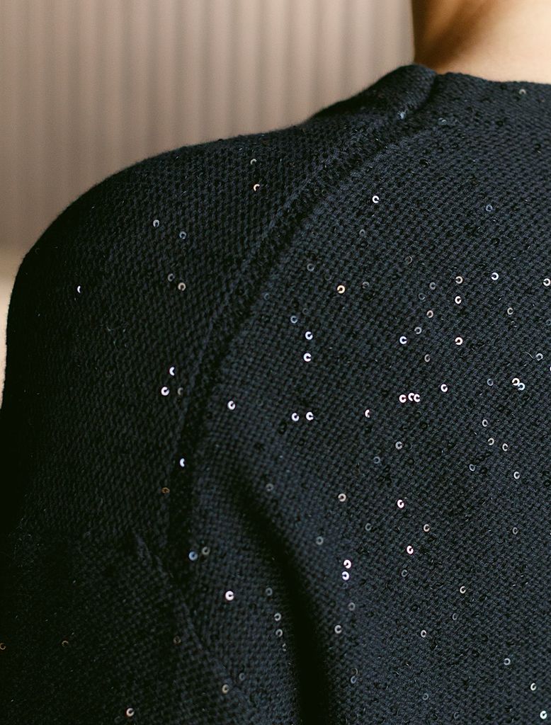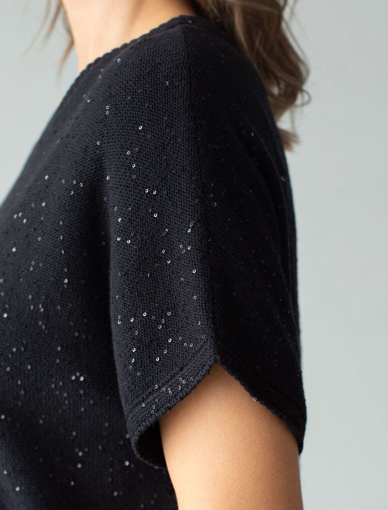 Джемпер с цельнокроенным коротким рукавом из хлопковой пряжи с пайеткамиВопросы по товару