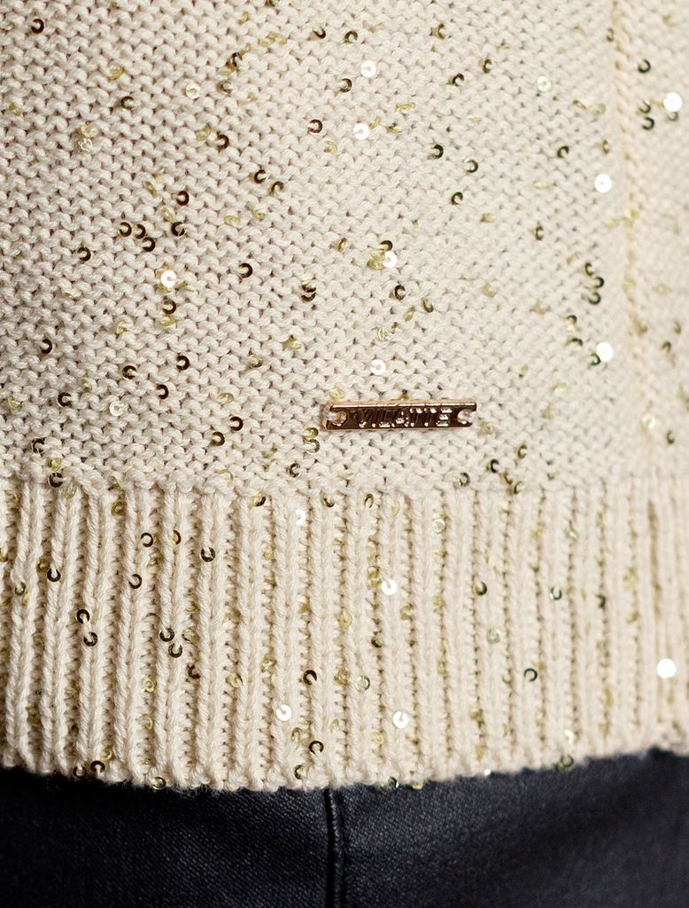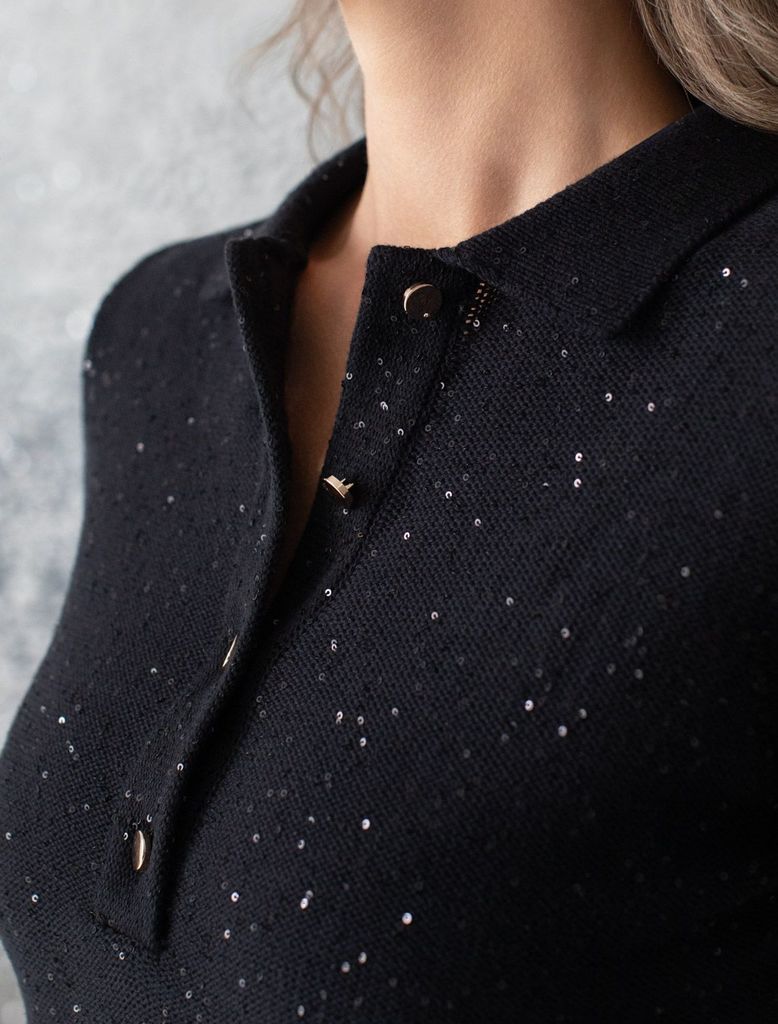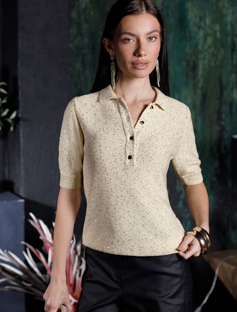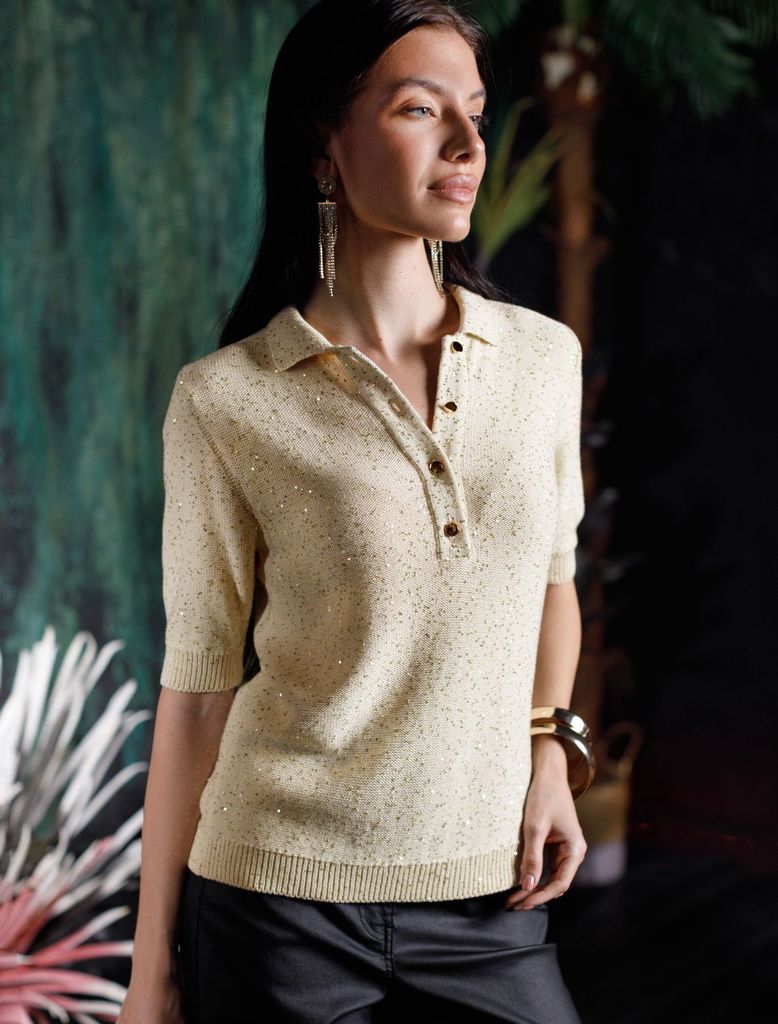 Джемпер поло с застежкой на пуговицы из хлопковой пряжи с пайеткамиВопросы по товару