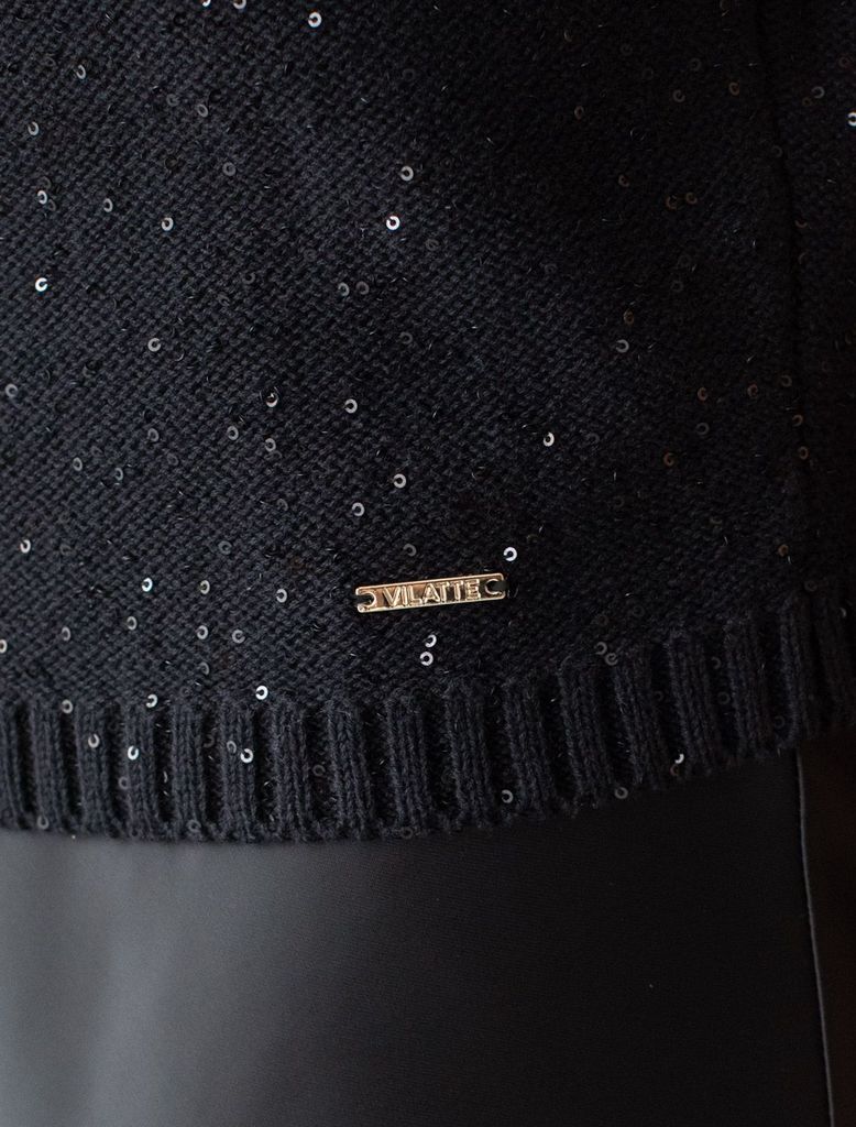 Состав: 90%Хлопок 10%ПЭ Плотность: 5 GG Легкий джемпер черного цвета с цельнокроенным коротким руковом выполнен из хлопковой пряжи с вкраплением сияющих пайеток, что придает особую изысканность. Стиль... Показать описаниеный джемпер связан изнанкой, пряжа отличается легкостью и приятной текстурой, совершенно не колется, обеспечивает комфорт даже при длительном использовании, а натуральные волокна поддерживают оптимальный температурный баланс. Свободный крой и цельнокроенный рукав создают расслабленный, но аккуратный образ. Нарядный джемпер подойдет девушкам и женщинам больших размеров, в нем вы будете чувствовать себя уверенно и свободно в любой ситуации. Мерцающий эффект пайеток добавляет образу выразительности и индивидуальности. Мерцающее полотно добавляет особого шарма вашему образу, делая его уместным как на праздник, так и для повседневного выхода. Новый год, вечеринка или любое другое мероприятие пройдут ярко — сияющие пайетки создают ощущение праздника в каждом движении. Для спокойного повседневного аутфита добавьте к этому эффектному джемперу спокойный низ, близкий по цвету, без дополнительных элементов декора.