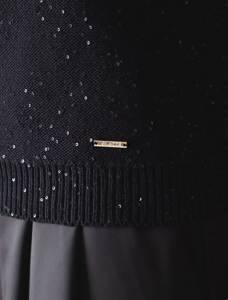 Состав: 72%Вис 28%Мет (люрекс) Плотность: 12 GG Стильный джемпер черного цвета с рукавами средней длины выполнен из мягкой вискозы с добавлением люрекса, который придает образу изысканный блеск и прем... Показать описаниеиальный вид.Полуприлегающий крой подчеркивает фигуру, создавая лаконичный и красивый силуэт. Круглый ворот и манжеты на рукавах обеспечивают удобство и аккуратность посадки. Серебристый блеск делает нарядный джемпер праздничным для особых случаев, а так же будет удачным выбором для повседневного ношения, когда хочется выглядеть элегантно и чувствовать себя уверенно. Благодаря тонкой вязке джемпер сохраняет легкость, позволяя коже дышать, и обеспечивает, приятные тактильные ощущения на протяжении всего дня. Этот оригинальный джемпер позволит вам блистать в любой ситуации, подчеркивая вашу индивидуальность без лишних деталей. Джемпер легко сочетать с разными элементами гардероба для создания эффектных образов. Классический силуэт джемпера гармонирует в комплекте как с брюками, так и с юбками различных фасонов, легко впишется в деловой или повседневный стиль. Благодаря ненавязчивому блеску люрекса изделие смотрится стильно без излишней вычурности.