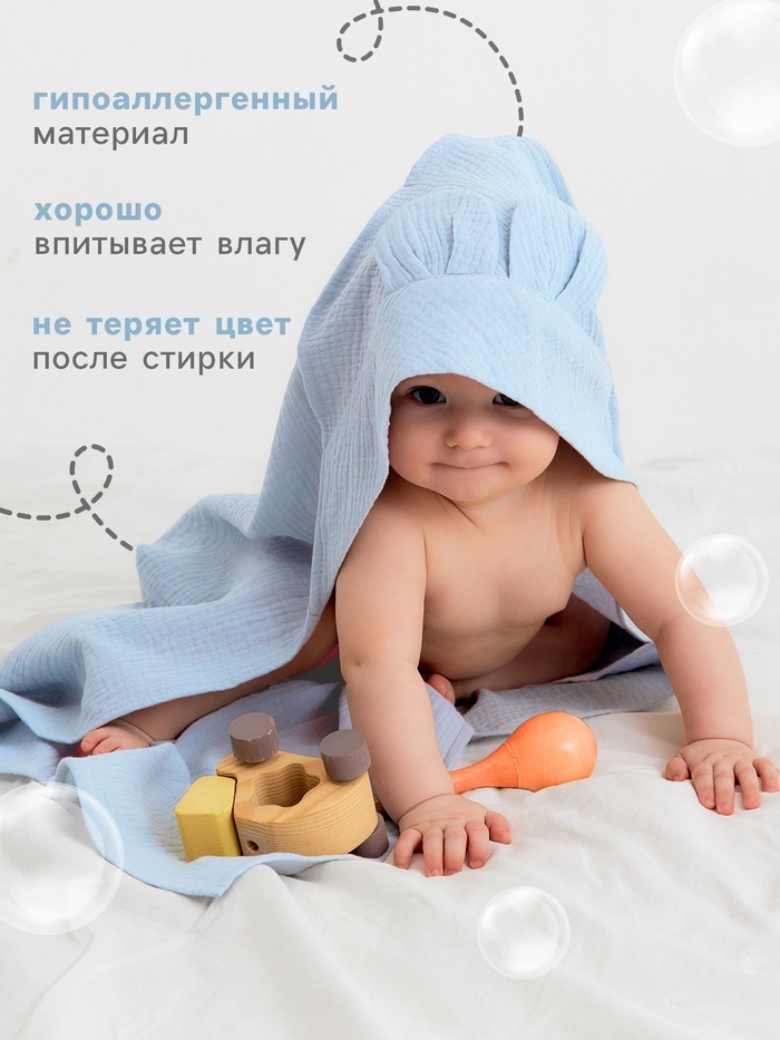 Пончо муслиновое детское LoveLife, 56?70 см, 100% хлопок, 120 г/м?, голубое Вопросы по товару