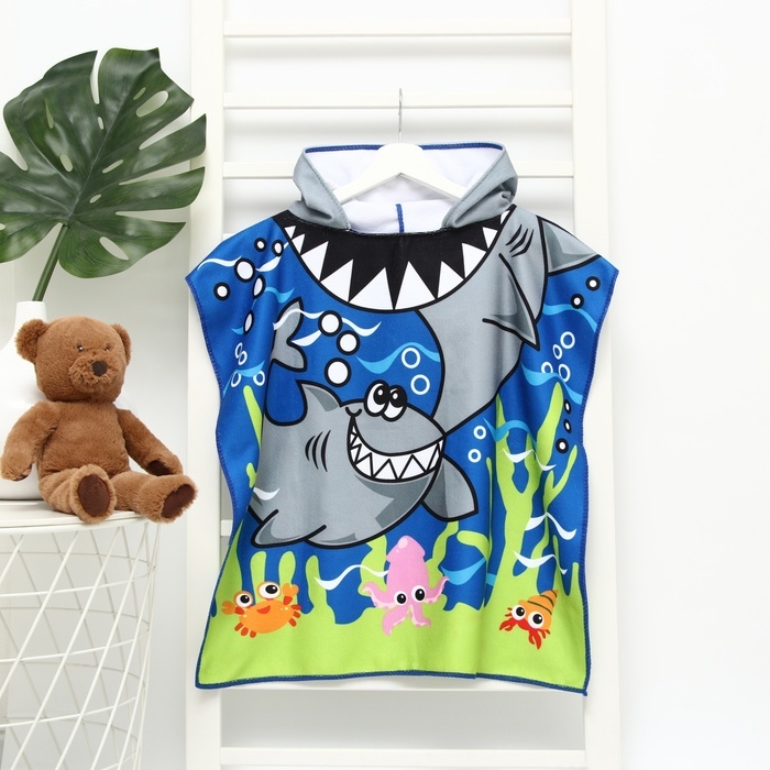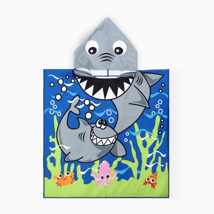 Полотенце - пончо детское махровое «Крошка Я. Акулы», 60?120 см, микрофибра