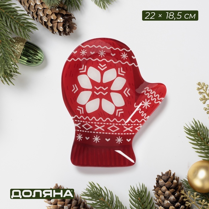 Блюдо сервировочное Доляна «Рукавицы. Зимине забавы», 22 ? 18.5 см, стеклоВопросы по товару