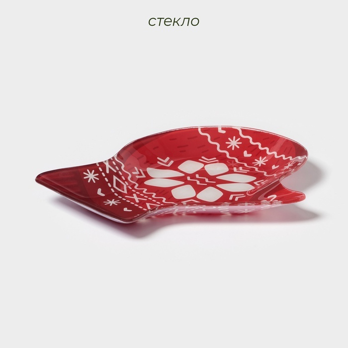 Блюдо сервировочное новогоднее Доляна «Новогодние забавы», 17.7?18.5?3.5 см, стекло, белое, красноеВопросы по товару