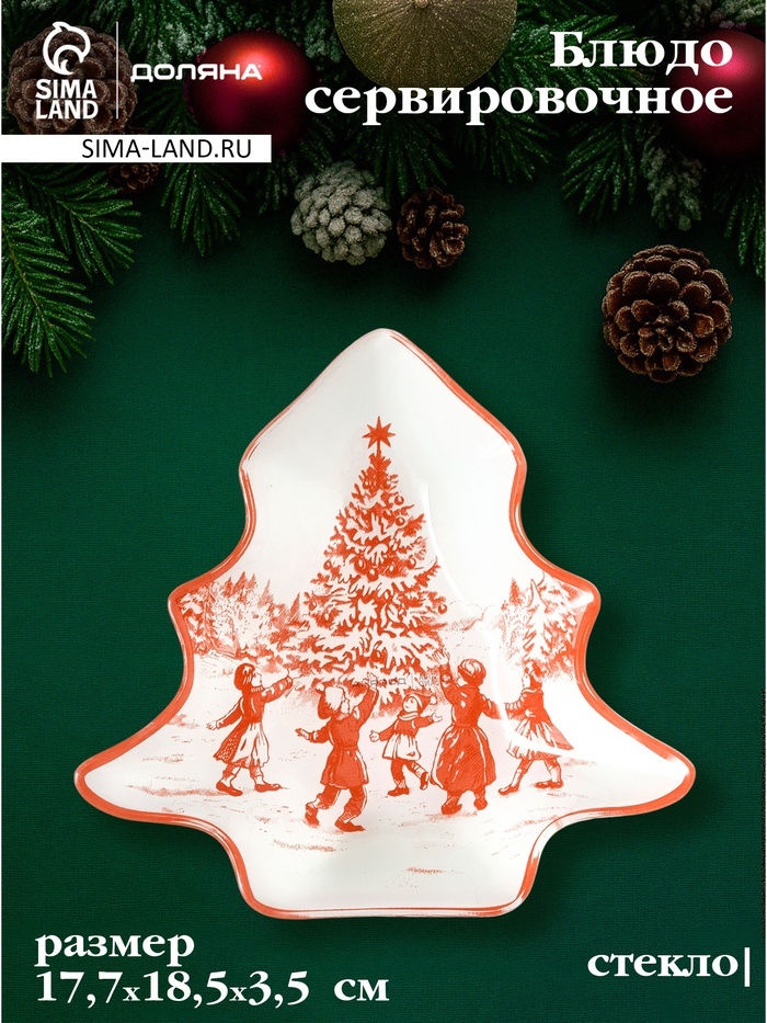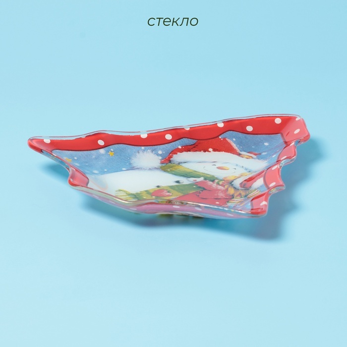 Блюдо сервировочное Доляна «Ёлочка. Поцелуй снеговика», 18?17.5 см, стеклоВопросы по товару