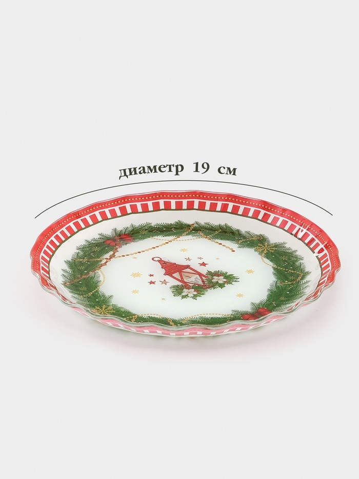 Сервировка, от которой невозможно отвести взгляд! Сервировочное блюдо — яркий, но сдержанный акцент для новогоднего и рождественского стола. Разноцветный рисунок на белом стекле создаёт атмосферу праз... Показать описаниедника без излишней пестроты и подходит как для закусок, так и для десертов. Особенности: * Новогодняя тематика: рисунок передаёт волшебство зимних праздников — узоры, гирлянды, сказочные мотивы — но не содержит символов конкретного года. Блюдо останется актуальным в течение многих сезонов. * Разноцветный рисунок на белом стекле: яркие детали оживают на нейтральном фоне, не перегружая сервировку. Такое блюдо легко сочетается с белой посудой, деревянными подставками и текстилем в природной гамме. * Диаметр 19 см: размер подходит для нарезки сыра, фруктов, канапе или мини-десертов. Высота бортика 2,1 см достаточно для удержания мелких крошек, но не нарушает эстетики подачи. Это сервировочное блюдо — не просто посуда, а элемент праздничного оформления. Оно уместно на новогоднем ужине, рождественском обеде или зимнем фуршете. Пусть даже простая закуска заиграет волшебством. Дополнительно Нельзя мыть в посудомоечной машине и использовать в СВЧ-печи. Рекомендуется мыть только вручную без агрессивных моющих средств.