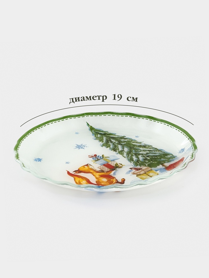Блюдо новогоднее сервировочное Доляна «Зверьки в лесу», d=19.5 см, стекло, белое, зелёноеВопросы по товару