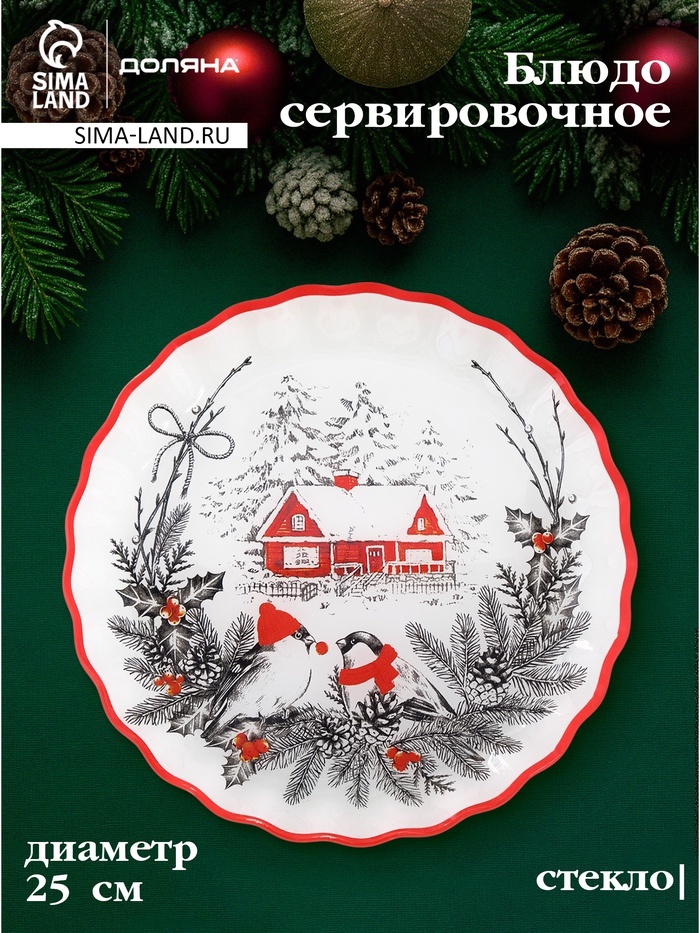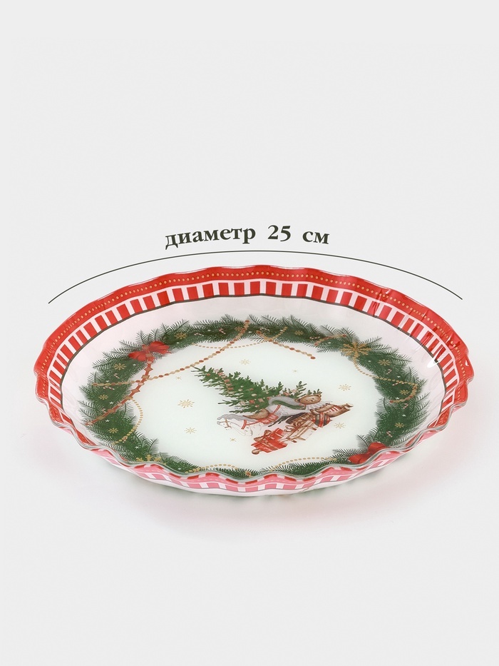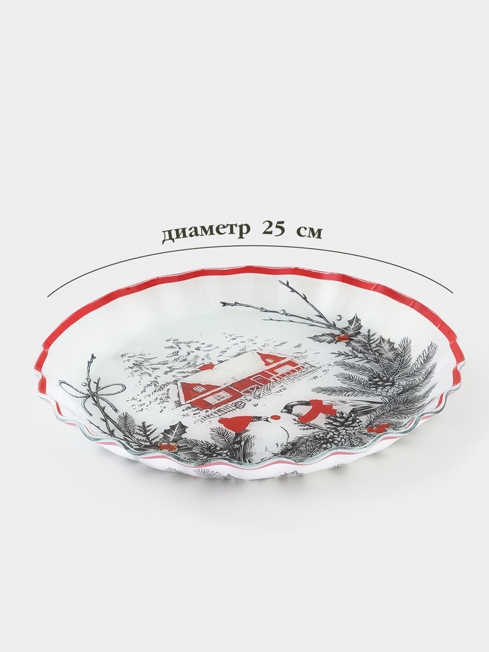 Блюдо новогоднее сервировочное Доляна «С Новым Годом», d=25 см, стекло, белое, красноеВопросы по товару