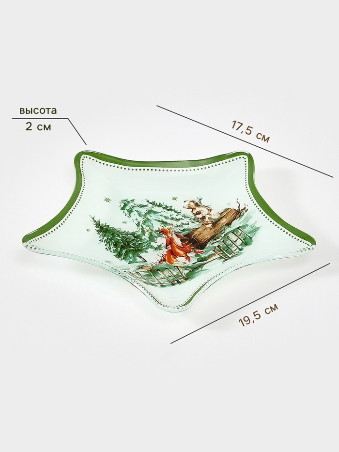 Блюдо новогоднее сервировочное Доляна «Зверьки в лесу», 17.7?18.5?3.5 см, стекло, белое, зелёноеВопросы по товару
