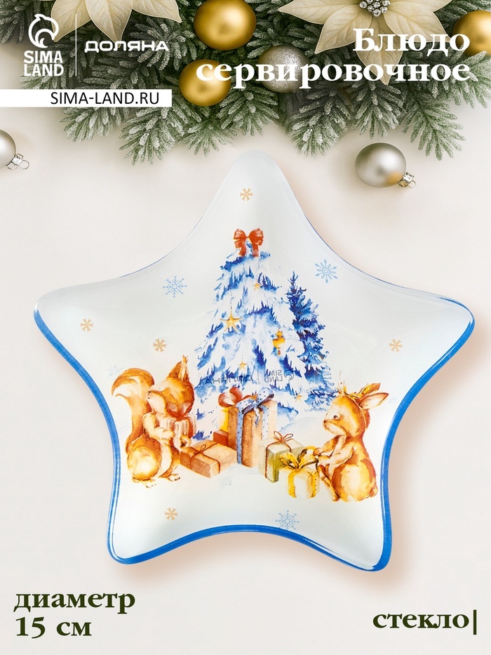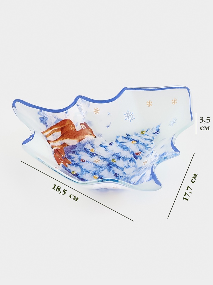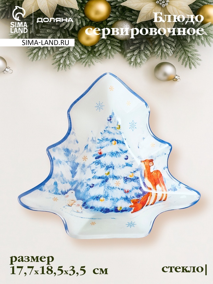 Блюдо сервировочное новогоднее Доляна «Новый Год в лесу», 17.7?18.5?3.5 см, стекло, белое, голубоеВопросы по товару