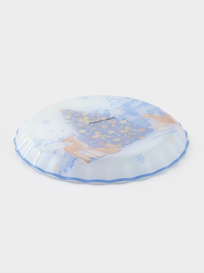 Блюдо сервировочное новогоднее Доляна «Новый Год в лесу», d=19, h=2.1 см, с бортиком, стекло, белое, голубоеВопросы по товару