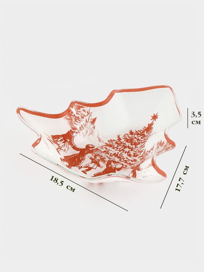 Новогоднее настроение начинается со стола. Фигурное стеклянное блюдо с новогодней тематикой — готовое украшение для праздничного интерьера. Его форма и рельеф передают дух зимнего праздника, не перегр... Показать описаниеужая сервировку. Подходит для подачи конфет, орехов, печенья или фруктов — всего, что обычно появляется на столе в канун Нового года. Особенности: * Тема в деталях: фигурная форма и рельефный узор создают атмосферу праздника. Оно не требует дополнительного декора: стоит на столе и сразу становится его акцентом. * Универсальность в использовании: прозрачное стекло сочетается с любым стилем сервировки — от классической до современной. Плоская форма обеспечивает удобную подачу мелких угощений. * Практичность и уход: можно мыть в посудомоечной машине. * Компактный формат: габариты ( 24х18,5х2,7 см) делают блюдо удобным для небольших столов или подарочных композиций. Подходит как для семейного ужина, так и для новогоднего подарка — в комплекте с домашним вареньем или печеньем. Фигурное стеклянное блюдо с рельефом — практичный акцент, который работает в декабре и остаётся полезным круглый год.