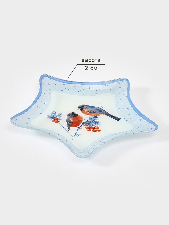 Блюдо новогоднее сервировочное Доляна «Снегири на ветке», d=19 см, стекло, голубоеВопросы по товару