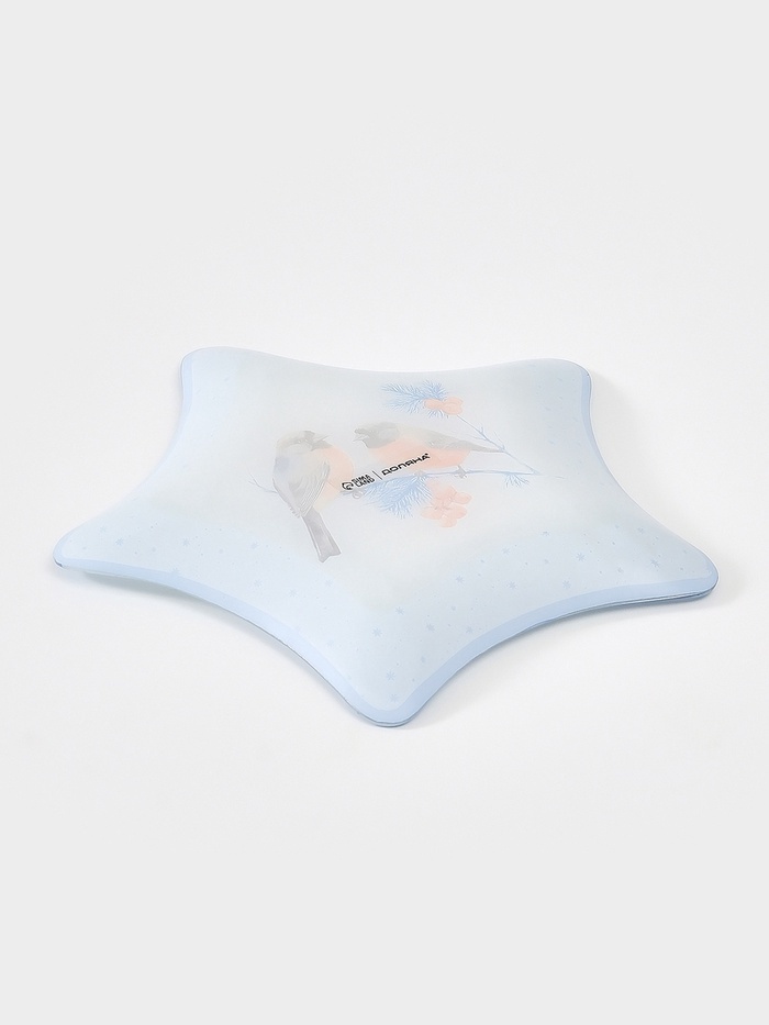 Новогоднее настроение — в каждой детали сервировки! Сервировочное блюдо — это изящная голубая звезда из стекла, украшенная тонкой зимней графикой. Оно не просто подаёт угощения — оно создаёт атмосферу... Показать описание праздника на вашем столе. Особенности: * Новогодний дизайн: рисунок снегирей на ветке выполнен вручную и передаёт лаконичную красоту зимы. Голубой фон подчёркивает свежесть образа и гармонирует с традиционной новогодней палитрой. * Форма-звезда: нестандартный силуэт превращает блюдо в декоративный элемент. Оно уместно как для подачи закусок, так и в роли самостоятельного украшения сервировки. * Стекло — чистота и элегантность: материал подчёркивает прозрачность замысла: гладкая поверхность, лёгкий вес. Такое блюдо не перегружает стол, но добавляет ему изысканности. * Уход: изделие рассчитано на бережное использование — его не рекомендуется мыть в посудомоечной машине и подогревать в СВЧ. Создайте новогодний антураж без лишних слов Блюдо идеально впишется в сервировку к Рождеству, Новому году или зимнему фуршету. Его диаметр — 19,5 см — позволяет разместить как канапе и нарезки, так и сладости. Это не просто посуда, а часть праздничного ритуала: когда каждая деталь говорит о заботе и внимании к гостям. Дополнительно Нельзя мыть в посудомоечной машине и использовать в СВЧ-печи. Рекомендуется мыть только вручную без использования агрессивных моющих средств.