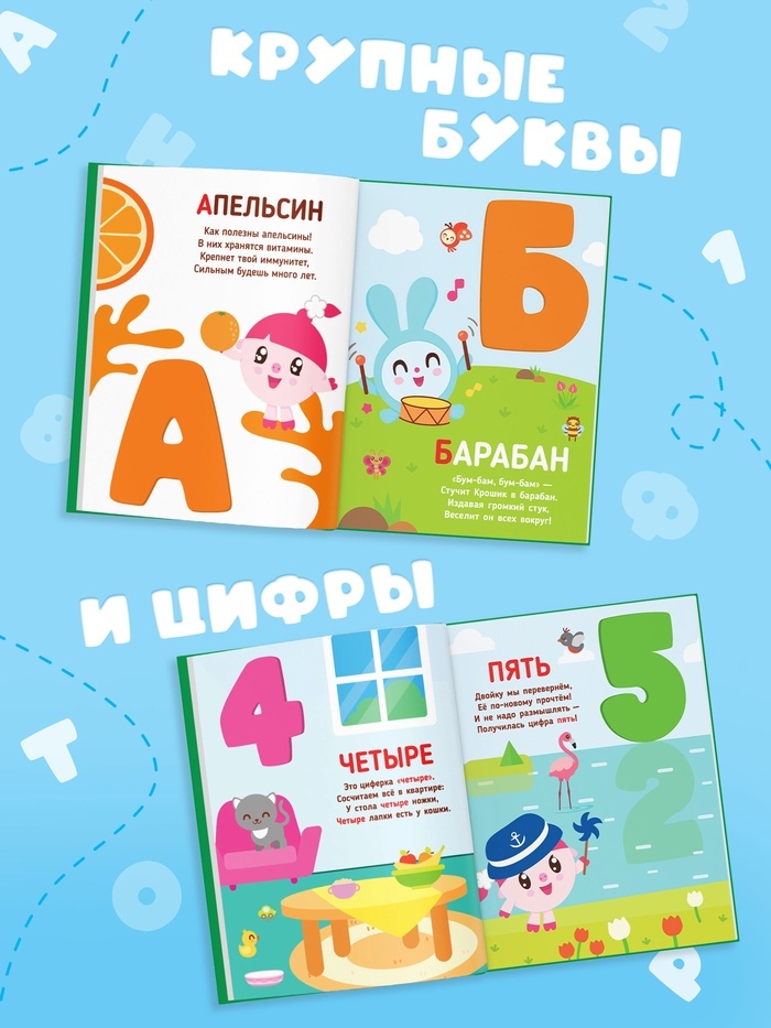 Книга «Азбука и счёт с Малышариками» — это увлекательное пособие для малышей, которое помогает освоить азбуку и цифры через весёлые стихи и яркие иллюстрации. Крупные буквы, простые задания и любимые ... Показать описаниегерои делают обучение лёгким и приятным. Особенности * 48 страниц с заданиями, где каждая буква и цифра представлена в игровой форме, что облегчает запоминание. * Яркие картинки и стихи поддерживают интерес ребёнка, превращая обучение в увлекательное занятие. * Крупные символы и понятные объяснения подходят даже для самых маленьких учеников. * Любимые персонажи из мультсериала «Малышарики» создают тёплую и знакомую атмосферу, которая мотивирует к обучению. Как это работает? Ребёнок открывает книгу и встречает добрых героев, которые помогают ему познакомиться с буквами и цифрами. Это похоже на «путешествие в мир знаний», где каждый стишок — это ключ к новому открытию. Яркие иллюстрации оживляют страницы, а рифмы делают информацию легко запоминаемой. Обучение становится естественным процессом, который приносит радость и удовлетворение. Польза для развития * Формирует базовые навыки чтения и счёта, готовя ребёнка к дальнейшему обучению. * Развивает внимание и память через повторение и взаимодействие с красочными элементами. * Стимулирует воображение и творческое мышление благодаря ярким картинкам и стихам. * Учит ребёнка сосредотачиваться на задачах, выполняя их с удовольствием и интересом. Обучение с удовольствием Эта книга напоминает дружелюбного проводника, который шаг за шагом знакомит малыша с азбукой и цифрами. Здесь нет скучных правил, только игры, стихи и любимые герои, которые делают процесс обучения особенным. Ребёнок учится, играя, и радуется каждому новому достижению. «Азбука и счёт с Малышариками» — это не просто книга, а первый шаг в мир грамоты и математики. Отличный выбор для родителей, которые хотят сделать обучение своего малыша увлекательным и эффективным! Дополнительно Размер книжки (А5+) — 18 ? 23 см.