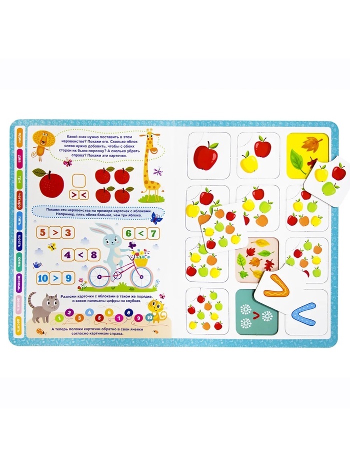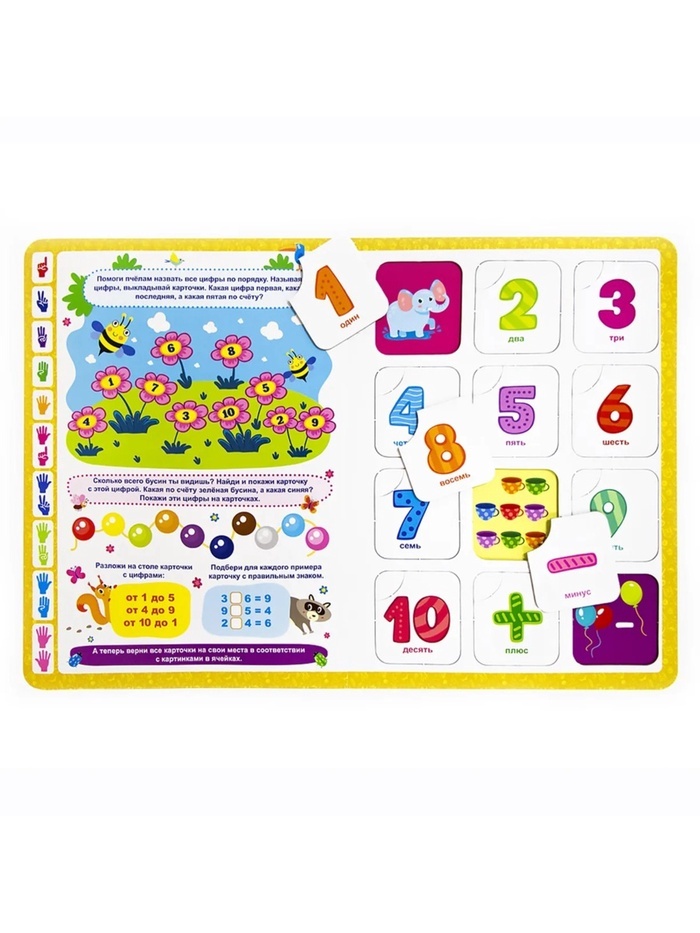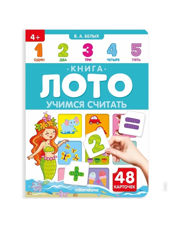 Книжка-лото «Учимся считать» станет увлекательным первым шагом ребёнка в мир цифр и математики. Этот компактный формат предлагает 48 карточек с заданиями, разработанных по методике педагога-психолога ... Показать описаниеВиктории Белых. Твёрдый переплёт и яркие иллюстрации делают книгу надёжной и удобной для занятий дома или в детском саду. Особенности * Cтраницs с заданиями и углублениями для карточек, связанных по смыслу с картинками. * 48 карточек помогают освоить цифры, счёт и базовые математические понятия через игру. * Задания направлены на развитие логического мышления, внимательности и мелкой моторики. * Карточки оснащены удобными отверстиями для детских пальчиков, чтобы малыш мог самостоятельно доставать их из окошек. * Плотный картон и ламинированная обложка обеспечивают долговечность и комфорт использования. Обучение через игру Каждая страница книги-лото помогает ребёнку шаг за шагом осваивать основы математики: от знакомства с цифрами до решения простых задач. Игровой формат делает процесс обучения лёгким и увлекательным. Ребёнок учится считать, различать числа и выполнять элементарные математические действия, развивая внимание и логическое мышление. Это не только готовит к школе, но и формирует уверенность в своих силах.