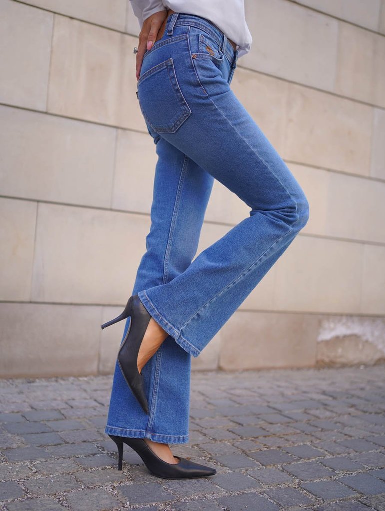 Цвет: стирка средняя Состав: 99%Хлопок, 1%Эластан Материал: Blue denim 007 str. Вес материала: 12.1 Фит: Slim flare fit Талия спереди: низкая Талия сзади: средняя Ширина колена: 19см Ширина низа: 25см... Показать описание ID: 143513 Описание Женские расклешеные ретро джинсы с пятью карманами в стилистике 70-х годов прошлого века.. Посадка Slim flare fit (облегающие по бедру и расклешенные от колена), низкая талия спереди средняя сзади. Для улучшения посадки по талии сделан подкройной пояс из 2-х частей. Застежка на молнии. Выполнены из слабоэластичной ткани denim stretch. Средняя стирка с потёртостями спереди и сзади. Рекомендации по уходу * * * * * Стирать в стиральной машине при температуре 30° Не использовать отбеливатель Ручная стирка при температуре 30° Гладить при минимальной температуре Химчистка недопустима