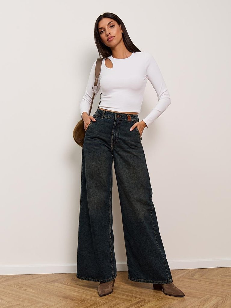 Цвет: стирка темная Состав: 100%Хлопок Материал: Blue denim 009 Вес материала: 11 Фит: Palazzo Талия спереди: высокая Талия сзади: высокая Ширина колена: 32см Ширина низа: 34см ID: 253014 Описание Отк... Показать описаниеройте для себя безграничный комфорт и стиль с нашими джинсами ПАЛАЦЦО (PALAZZO). Эти широкие джинсы с высокой посадкой идеально подходят для создания расслабленного, но элегантного образа. Также идеально подходят как для повседневной носки так и для особых случаев. Изготовленняые из мягкого традиционного денима, они обеспечивают полное сочетание удобства и долговечности. Высокая талия с вытачками сзади для улучшения посадки пояса, карманы "хулиганы", свободные штанины сильно расширяющиеся к низу, позволяют получить утонченный силуэт и подчеркнуть особенности женской фигуры наилучшим образом и в тоже время обеспечить свободу движений. Эти джинсы с уникальным тинтованным эффектом "GET DIRTY", т.е. эффектом запачканных джинсов добавят изюминку в ваш гардероб. Рекомендации по уходу * * * * * Стирать в стиральной машине при температуре 30° Не использовать отбеливатель Ручная стирка при температуре 30° Гладить при минимальной температуре Химчистка недопустима