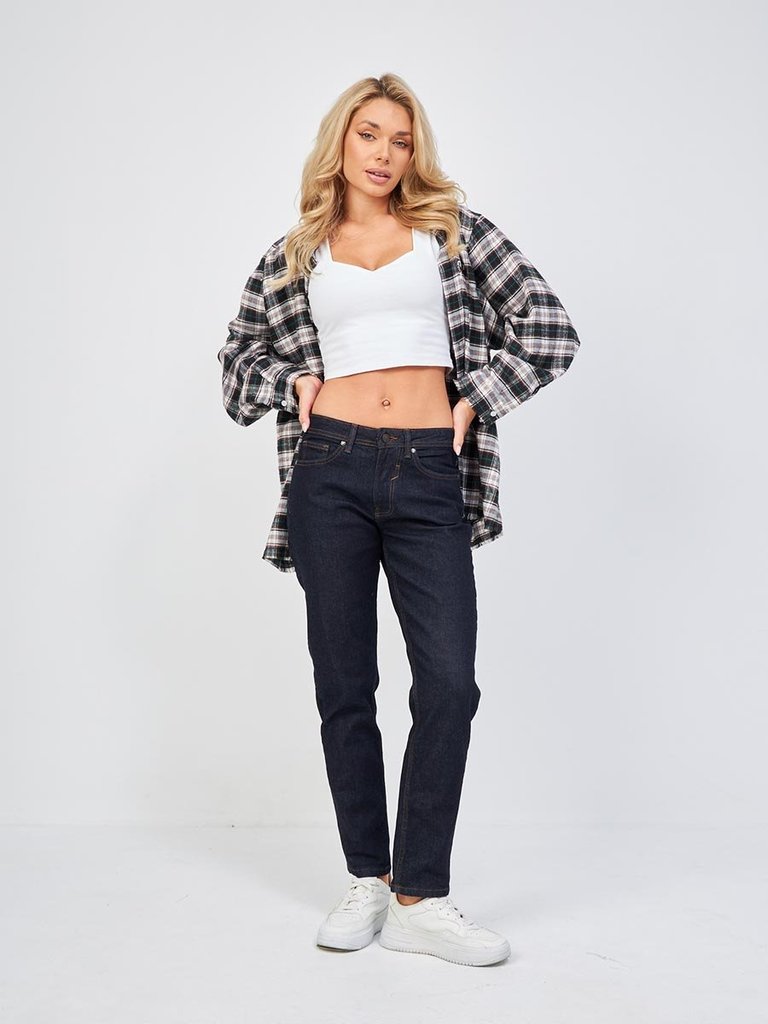 Цвет: стирка лицевая Состав: 99%Хлопок, 1%Эластан Материал: Blue denim 007 str. Вес материала: 12.1 Фит: Boyfriend fit Талия спереди: средняя Талия сзади: высокая Ширина колена: 20,5см Ширина низа: 16... Показать описаниесм ID: 253009 Описание Джинсы женские Boyfriend Fit ваша идеальная пара для уютного стиля! Эти джинсы созданы для того, чтобы подарить вам ощущение свободы и уверенности. Это крой, вдохновленный любимыми джинсами из мужского гардероба, но с продуманной женственной посадкой, которая подчеркивает достоинства вашей фигуры. Свободные по бедру, зауженные к низу и укороченной длины создают силуэт, который визуально стройнит и удлиняет ноги, делая образ изящным и современным. Использование ткани Comfort Stretch и подкройной пояс из двух частей обеспечивают наилучшее облегание в талии без дискомфорта. Средняя высота пояса спереди и высокая сзади обеспечивают дополнительное удобство в процессе носки. Специальная щадящая стирка сохраняет глубокий и насыщенный цвет денима, создавая эффект новизны, но при этом ткань сразу же мягкая и приятная к телу. Мы создали их для тех, кто ценит комфорт, не жертвуя стилем. Рекомендации по уходу * * * * * Стирать в стиральной машине при температуре 30° Не использовать отбеливатель Ручная стирка при температуре 30° Гладить при минимальной температуре Химчистка недопустима