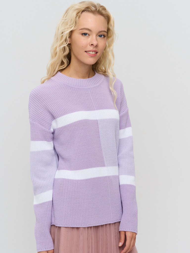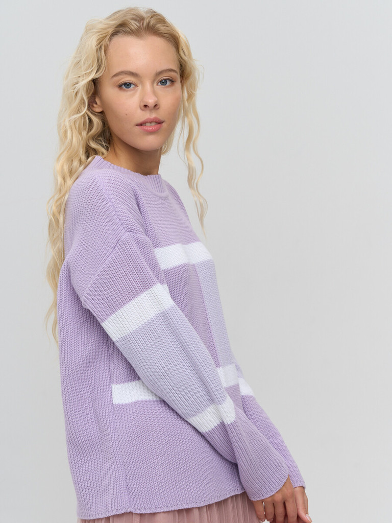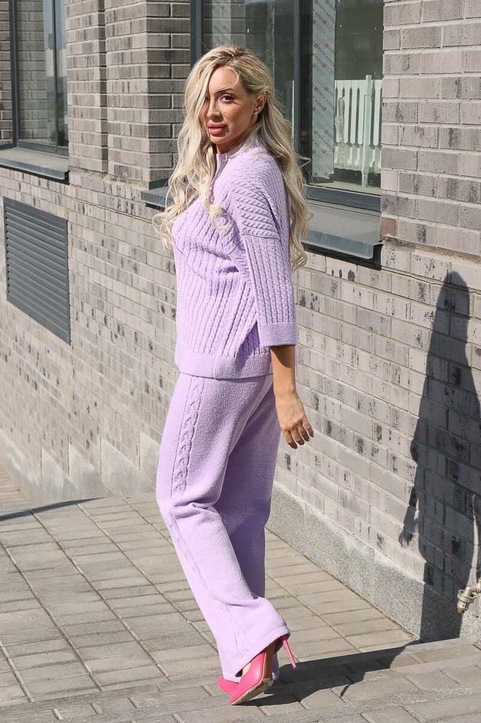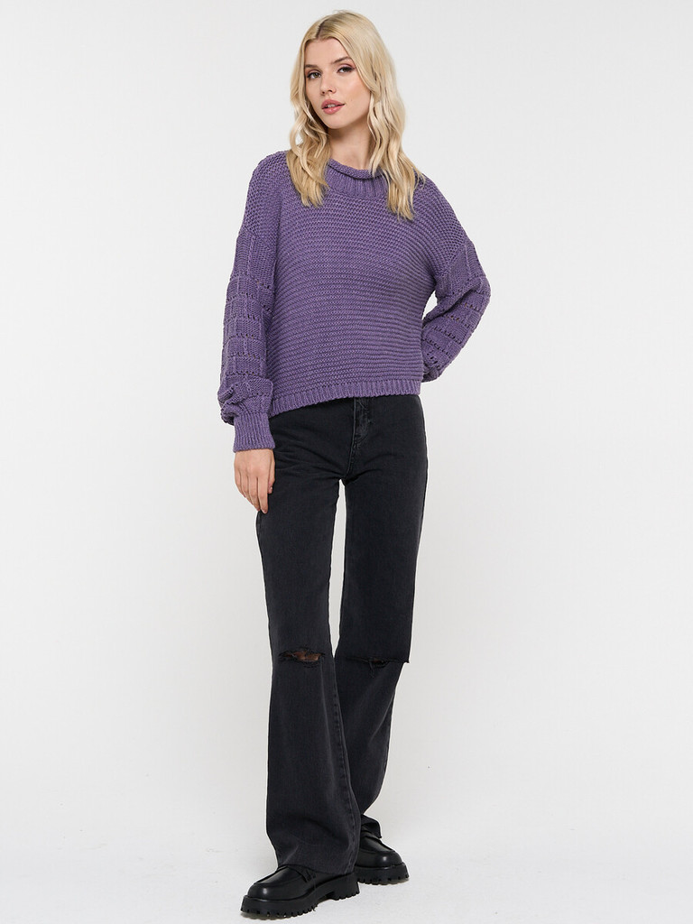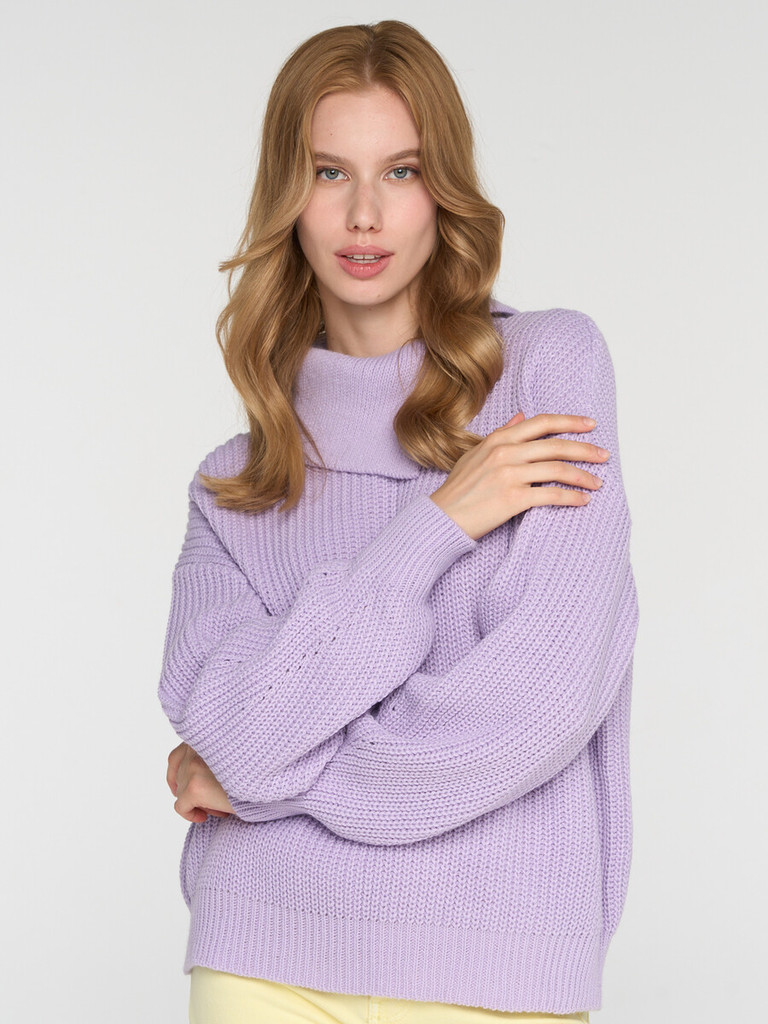 Очаровательный джемпер прямого силуэта из прозрачной кружевной ткани сиреневого цвета. Круглый вырез изделия обработан внутренней обтачкой. Цельнокроеные рукава обработаны манжетами, выполненными в те... Показать описаниехнике ручного вязания. Аксессуары в комплект не входят. Длина изделия по спинке от плечевого шва до низа изделия — 63 см. Рост фотомодели — 170 см.