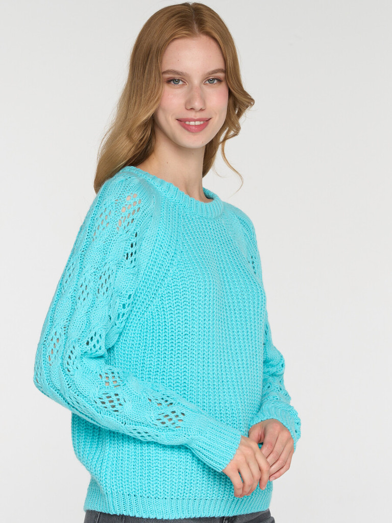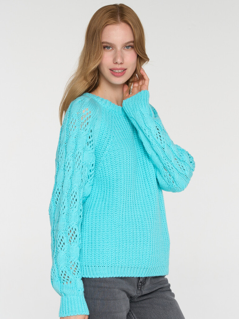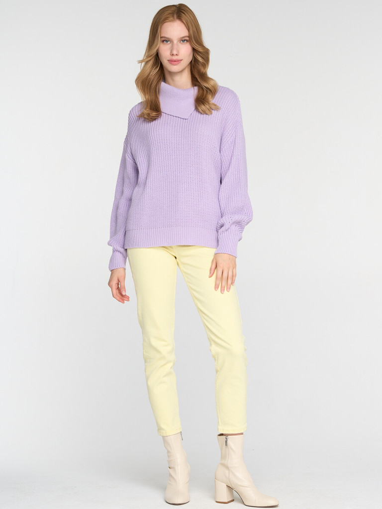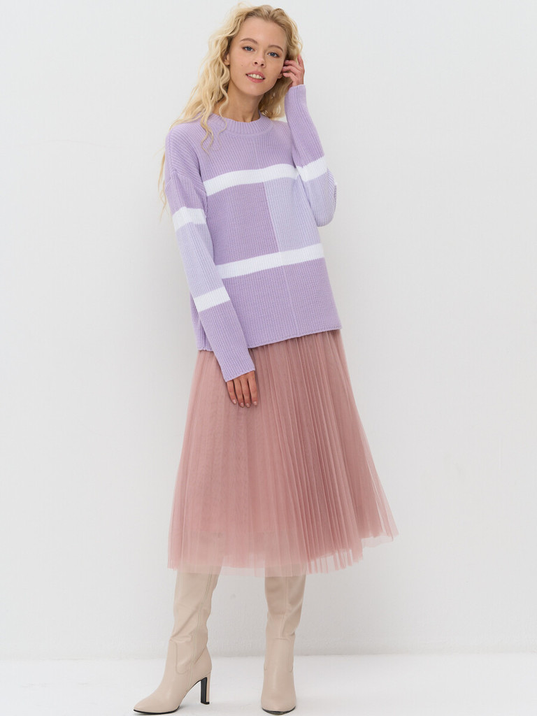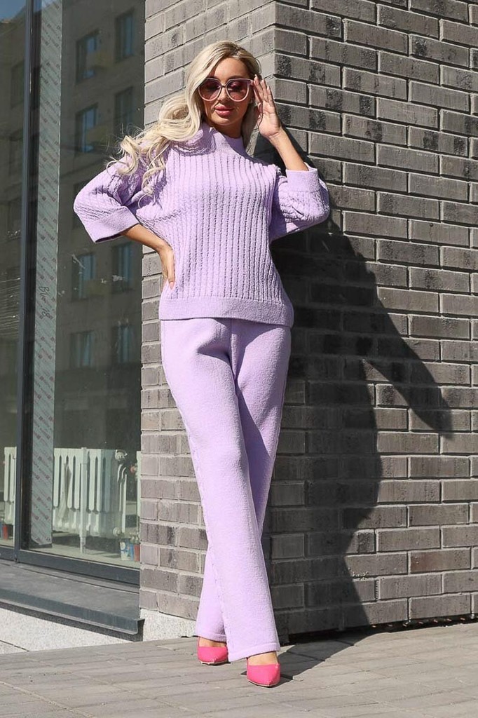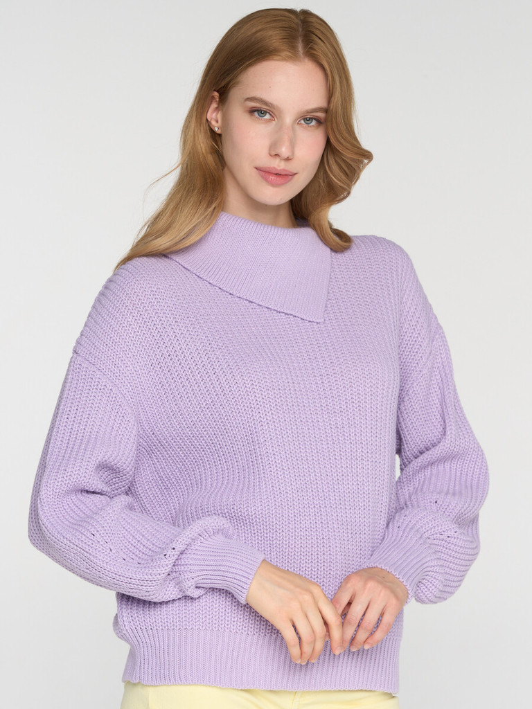 Очаровательный джемпер прямого силуэта из прозрачной кружевной ткани сиреневого цвета. Круглый вырез изделия обработан внутренней обтачкой. Цельнокроеные рукава обработаны манжетами, выполненными в те... Показать описаниехнике ручного вязания. Аксессуары в комплект не входят. Длина изделия по спинке от плечевого шва до низа изделия — 63 см. Рост фотомодели — 170 см.