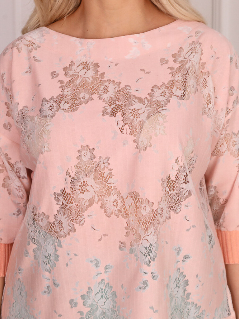 Очаровательный джемпер прямого силуэта из прозрачной кружевной ткани персикого цвета. Круглый вырез изделия обработан внутренней обтачкой. Цельнокроеные рукава обработаны манжетами, выполненными в тех... Показать описаниенике ручного вязания. Аксессуары в комплект не входят. Длина изделия по спинке от плечевого шва до низа изделия — 63 см. Рост фотомодели — 170 см.