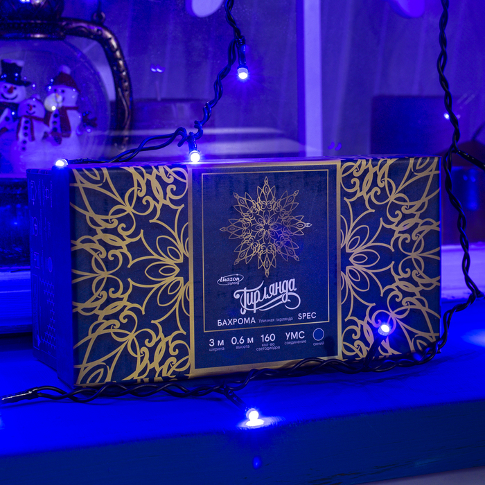 Гирлянда «Бахрома» 3 ? 0.6 м, IP44, УМС, тёмная нить, 160 LED, свечение синее, 220 ВВопросы по товару