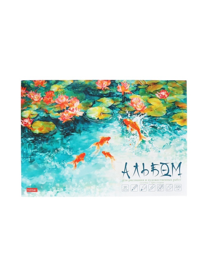 Альбом для рисования Hatber «Золотые рыбки» А4, 20 листов, склейка с трёх сторон, обложка из мелованной бумагиВопросы по товару