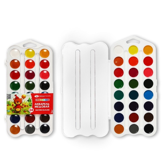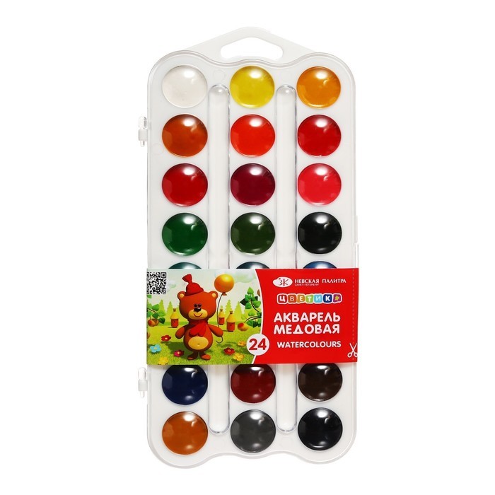 Акварель медовая «ЗХК. Цветик», 24 цвета, без кисти, белый пластиковый футлярВопросы по товару