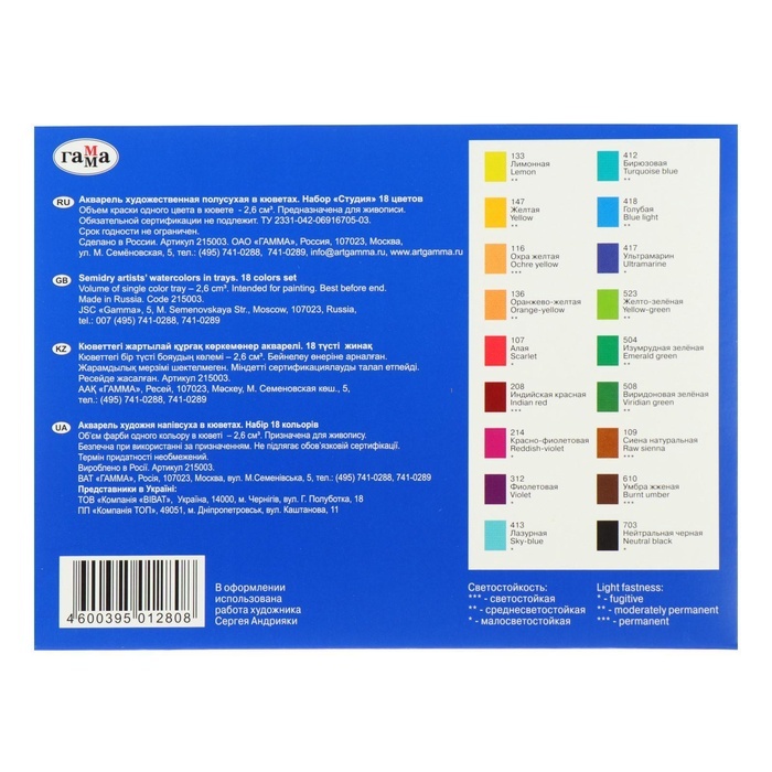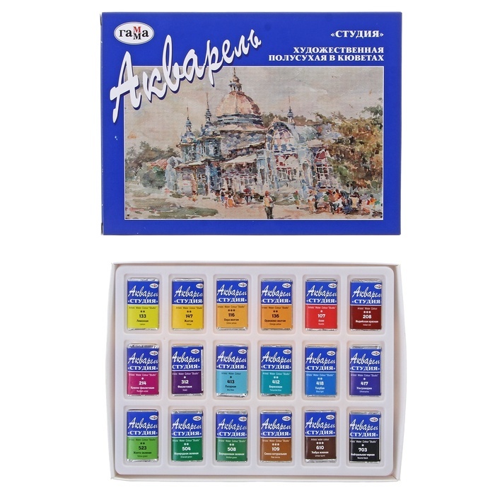 Акварель художественная в кюветах «Гамма. Студия», 18 цветов ? 2.5 млВопросы по товару