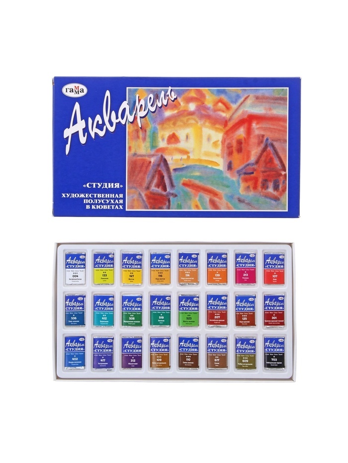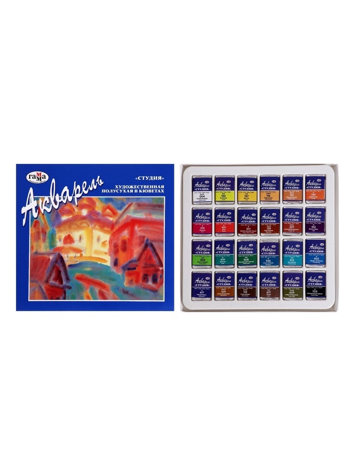 Акварель художественная в кюветах «Гамма. Студия», 24 цвета ? 2.5 млВопросы по товару