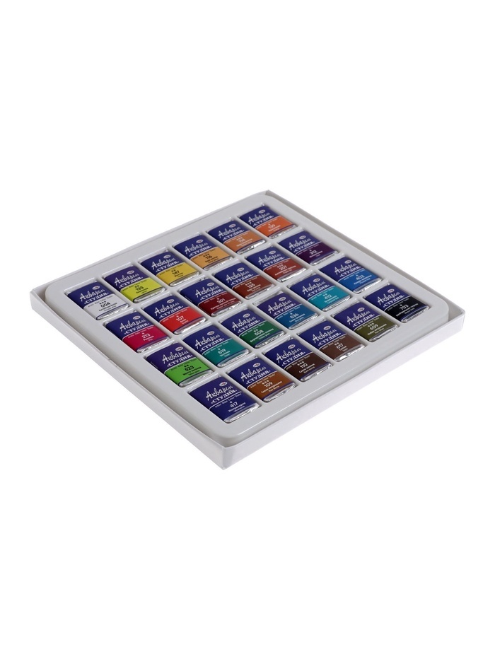 Медовая акварель изготовленная по классической рецептуре с яркими и чистыми цветами. Краска в подложке расположена группами: холодные-тёплые оттенки. Прекрасно размывается и разносится по поверхности ... Показать описаниебумаги, имея прозрачную основу без вкраплений. Краски смешиваются между собой, сохраняя насыщенность цвета. Краска легко смывается с рук и одежды. Трещина на акварели не является браком. Акварель трескается из-за испарения воды, которая была в составе краски. Чтобы восстановить рабочие свойства краски, необходимо восполнить нехватку жидкости