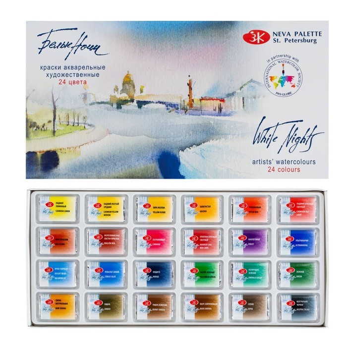 Акварель художественная в кюветах «ЗХК. Белые ночи», 24 цвета ? 2.5 млВопросы по товару