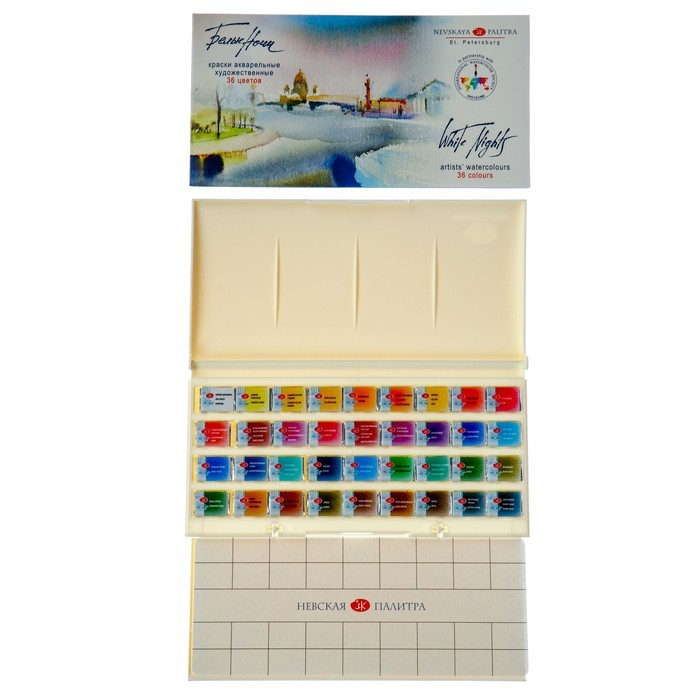 Акварель художественная в кюветах «ЗХК. Белые ночи», 36 цветов ? 2.5 мл, пластиковая палитраВопросы по товару