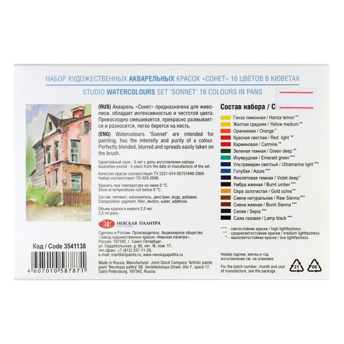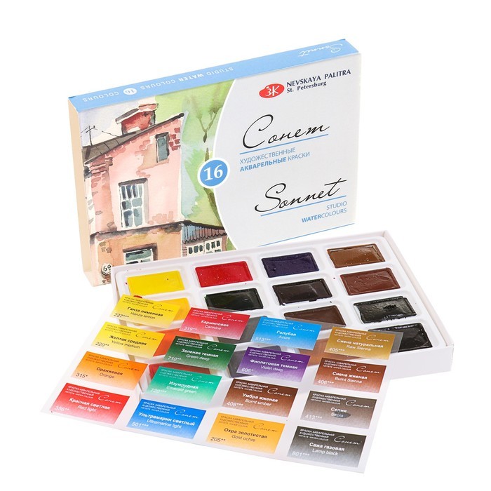 Акварель художественная в кюветах «ЗХК. Сонет», 16 цветов ? 2.5 млВопросы по товару