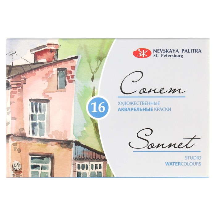 Художественные акварельные краски "Сонет" разработаны для начинающих художников, открывающих или совершенствующих свои творческие способности. Изготавливаются по современным рецептурам на основе преим... Показать описаниеущественно органических пигментов и синтетического связующего. Обладают интенсивностью цвета и прозрачностью. Превосходно смешиваются, размываются и легко берутся на кисть. Сбалансированная палитра в наборе акварели "Сонет" состоит из 16 базовых цветов, необходимых начинающему художнику для выполнения учебных работ, этюдов и эскизов.
