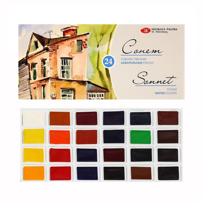 Акварель художественная в кюветах «ЗХК. Сонет», 24 цвета ? 2.5 млВопросы по товару