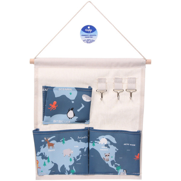Карман настенный подвесной 3отд. 3 крючка "Карта мира", 34*30см (лейбл Селфи) Вопросы по товару