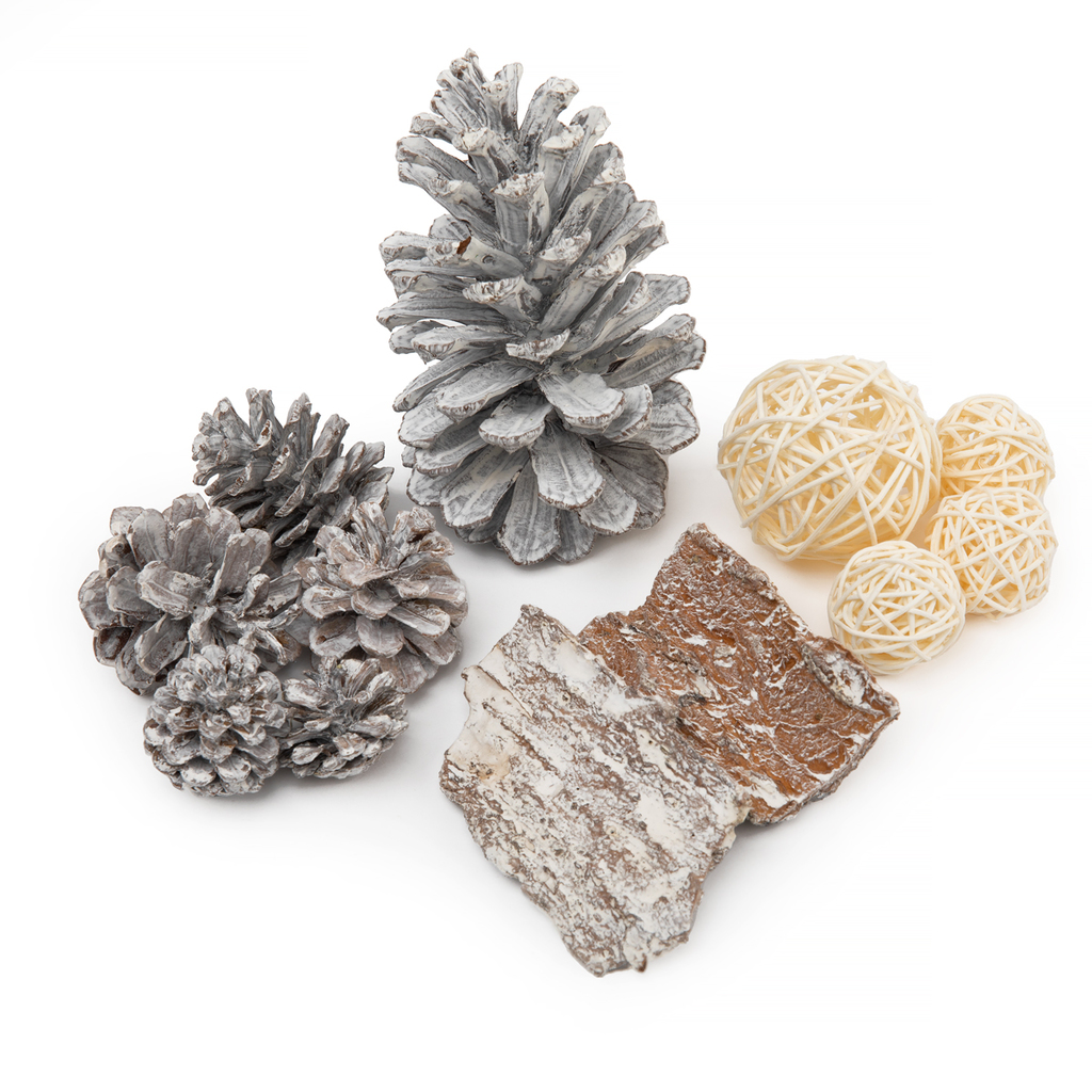 С набором природных материалов "Blumentag" DRS-03 можно создавать уникальные композиции, сочетая разные текстуры и цвета. Набор природных материалов "Blumentag" DRS-03 используется для создания флорис... Показать описаниетических интерьерных композиций, цветочной композиции, возможно использовать как основу при изготовлении топиариев, послужит отличным декором при оформлении подарочных корзин с фруктами, чайных и кофейных наборов. Так же применяется при оформлении подарков. Сочетание материалов набора позволяет создавать оригинальные композиции, которые будут выглядеть стильно и гармонично в любом интерьере. Кроме того, использование натуральных материалов делает такие композиции экологически чистыми и безопасными для здоровья. В набор входят: Шары из ротанга: Диаметр: от 4.9 ± 0.5 см - 1 шт. Диаметр: от 3 до 3.8 ± 0.5 см - 3 шт. Шишки: Длина: 3 ± 0.5 см, ширина: 3.7 ± 0.5 см, высота: 5 ± 0.5 см - 1 шт. Диаметр: от 3.7 до 3.9 ± 0.5 см, высота: от 3.5 до 4.3 ± 0.5 см - 2 шт. Диаметр: от 4.2 до 4.4 ± 0.5 см, высота: от 4.8 до 4.9 ± 0.5 см - 2 шт. Длина: 6.6 ± 0.5 см, ширина: 6 ± 0.5 см, высота: 9.8 ± 1 см - 1 шт. Кора дерева: длина от 7.5 до 8.3 ± 1 см, ширина: от 5.3 до 6.1 ± 1 см, толщина: 0.8 ± 0.3 мм - 2 шт. Вес набора: 80 ± 10 г