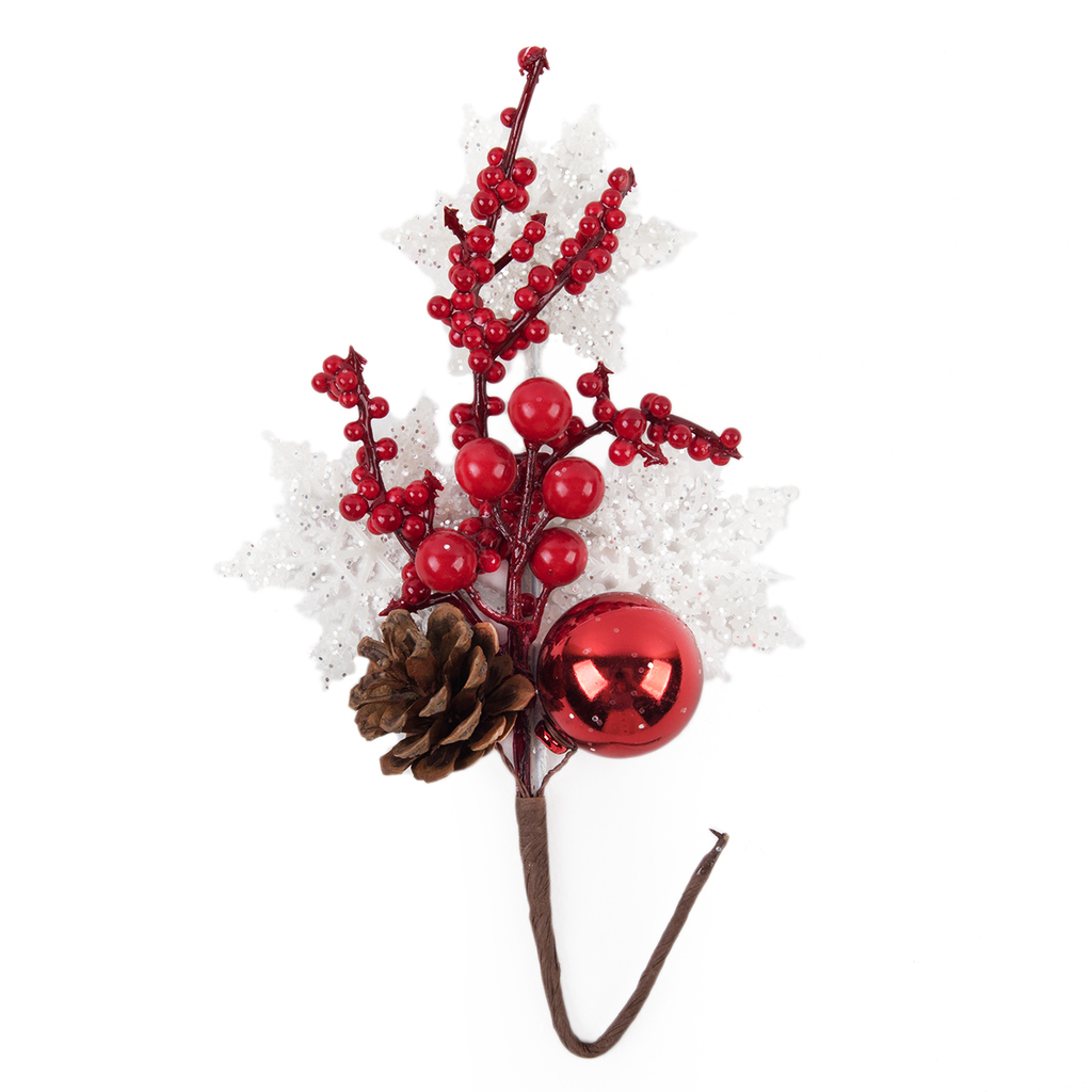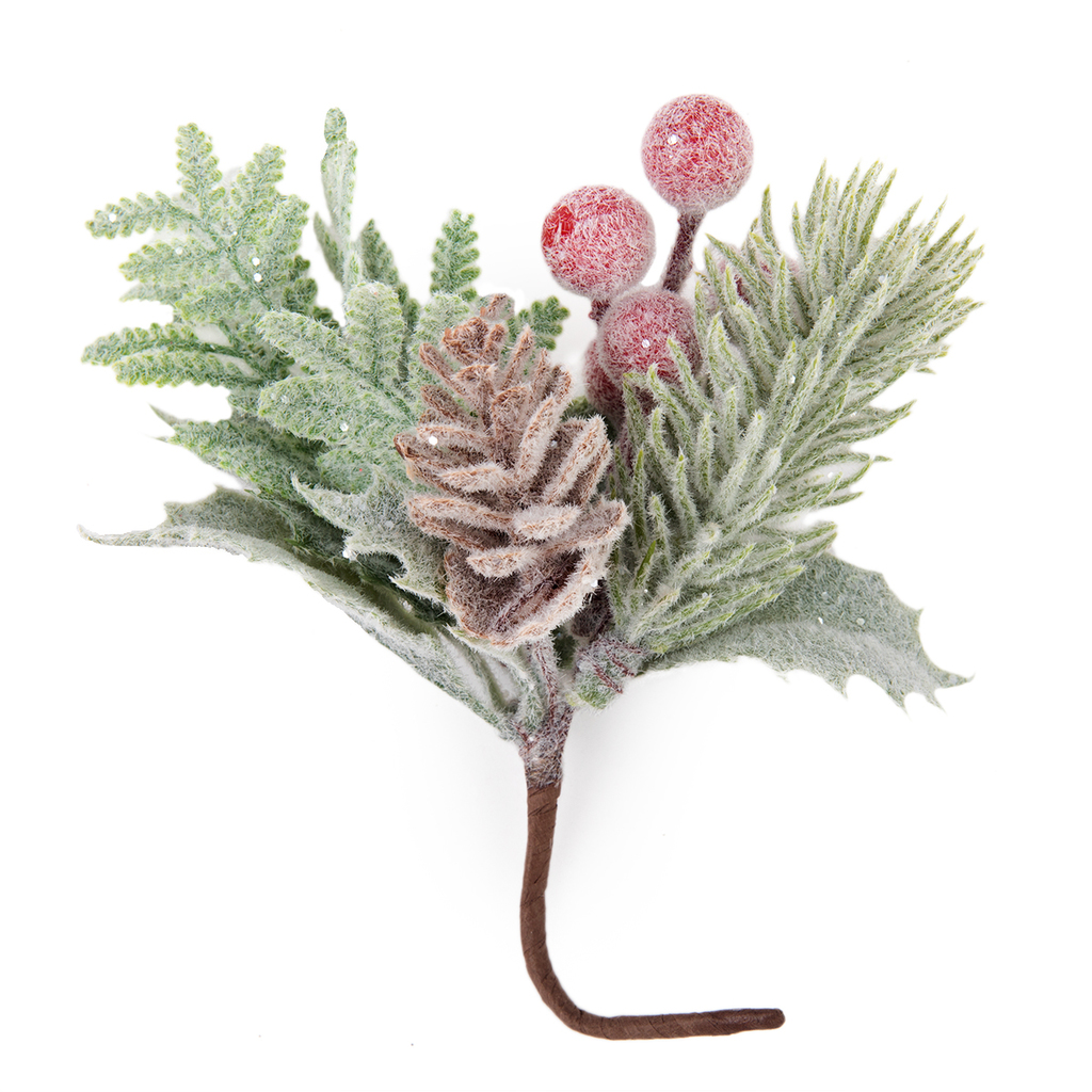 "Blumentag" VDD-65 Веточка декоративная заснеженная с ягодами и шишкой 6 х 1 шт. 16 см 01