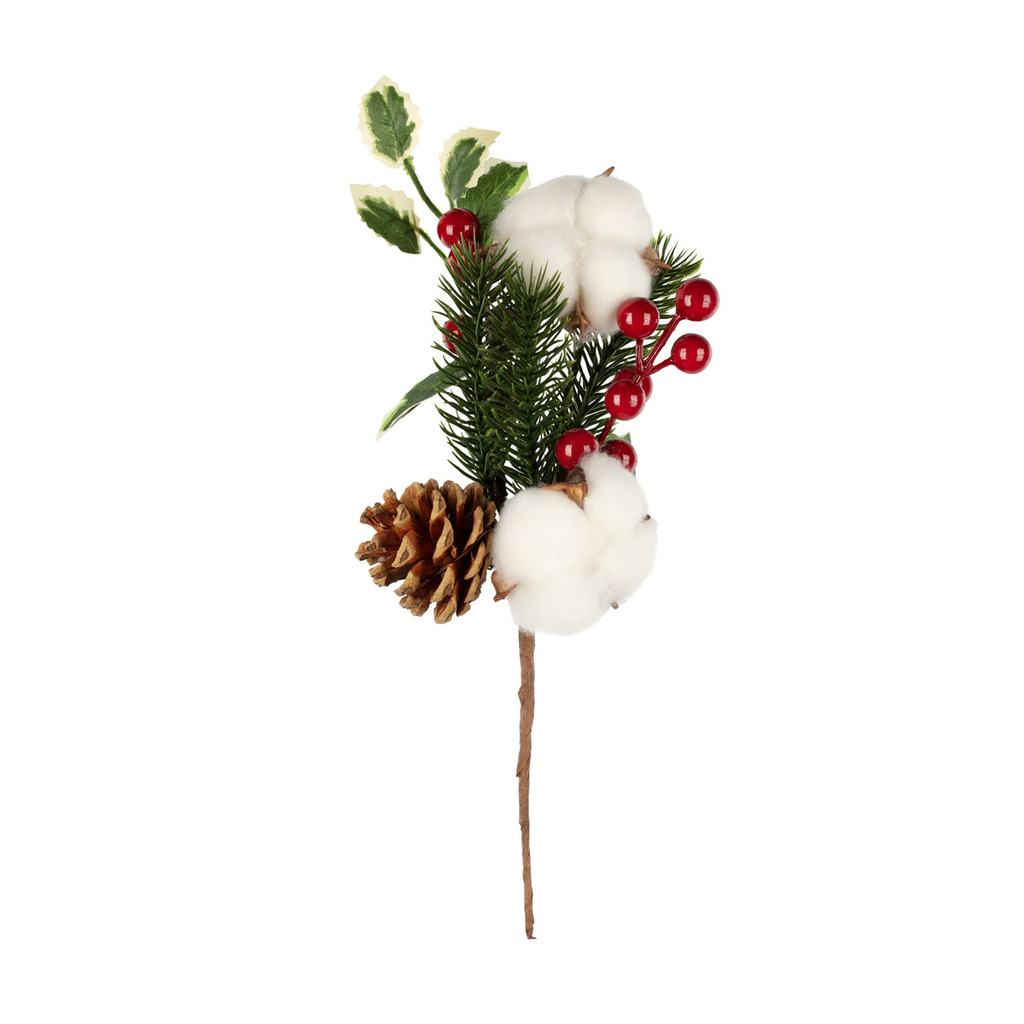 "Blumentag" VDD-38 Веточка декоративная с ягодами, шишкой и хлопком 6 х 1 шт. 21 см 01