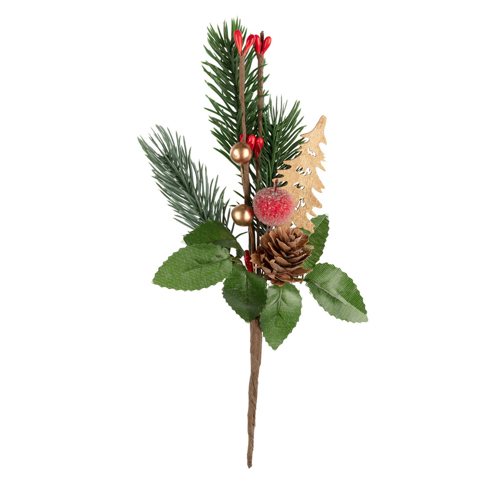 Декоративная веточка "Blumentag" VDD-49 используются во флористике, в композициях из искусственных цветов, в изготовлении новогодних венков, в топиариях, в декоре интерьера, оформлении подарков. Она п... Показать описаниерекрасно подойдет для создания осенней или зимней поделки. Основание из гибкой проволоки искусственной веточки обернуто флористической лентой, на веточке расположены натуральные шишки, искусственные хвойные веточки, декоративные ягодки. Длина 34 ± 1 см