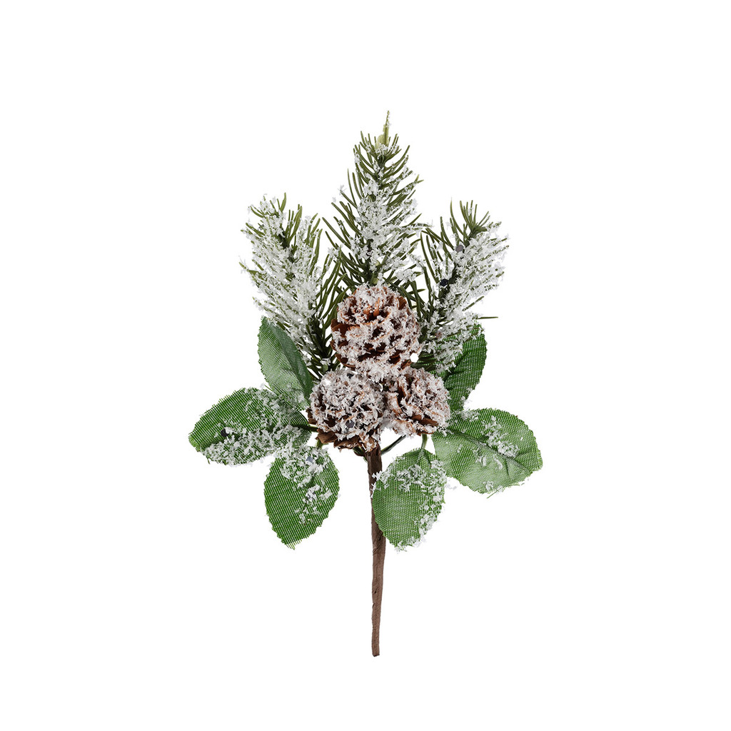 Декоративная веточка с имитацией инея "Blumentag" VDD-65 используются во флористике, в композициях из искусственных цветов, в изготовлении новогодних венков, в топиариях, в декоре интерьера, оформлени... Показать описаниеи подарков. Заснеженная искусственная веточка прекрасно подойдет для создания осенней или зимней поделки. Основание из гибкой проволоки искусственной веточки обернуто флористической лентой, на веточке расположены декоративные листья и хвойные веточки, шишки. Длина 16 ± 1 см